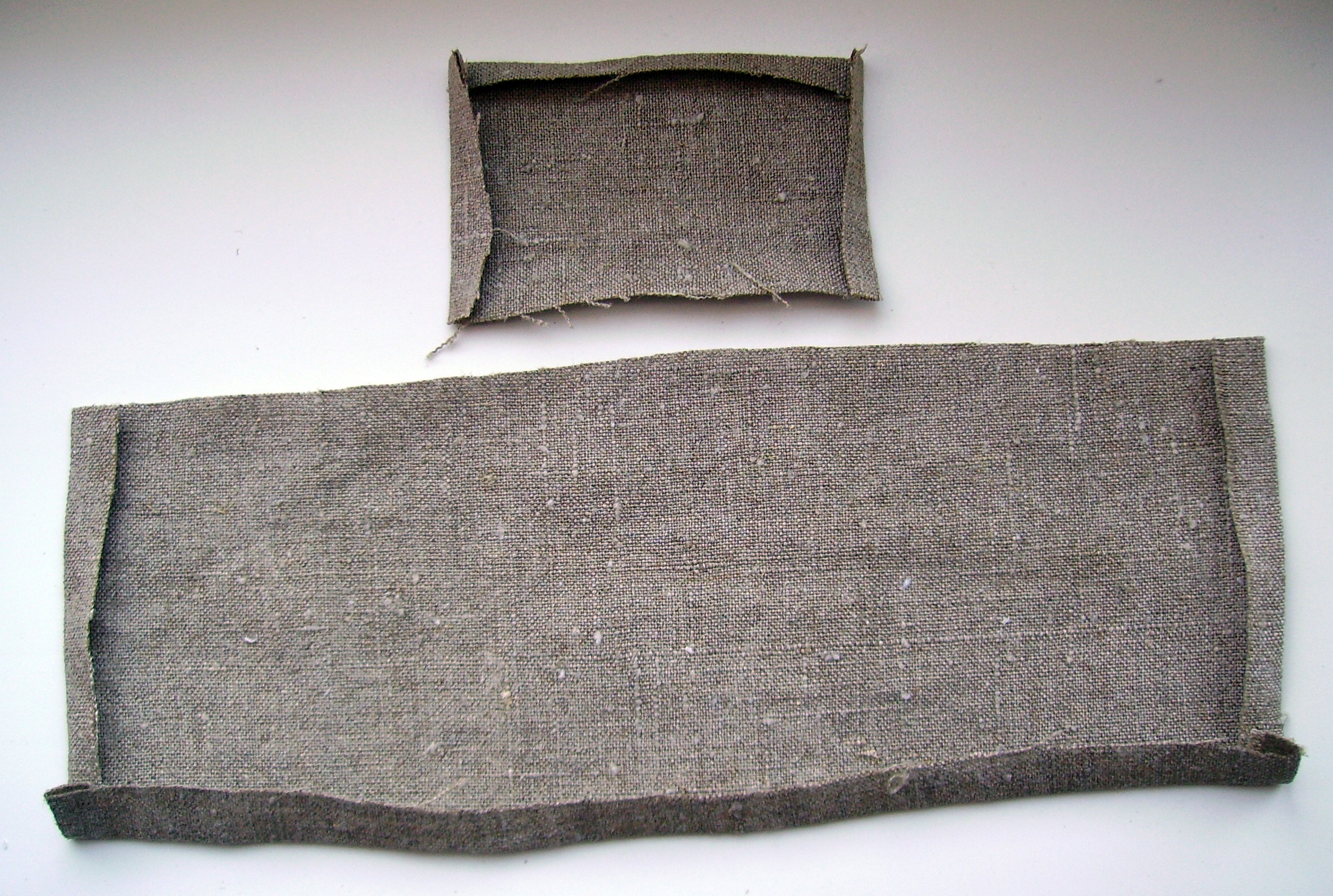| 1. | Tee nii: Võta üks suurem ja üks väiksem ristkülikukujuline tükki kangast. Suuremast tükist tekib keha, väiksemast käed. Suurema tüki pikkuseks arvesta u 2 korda nuku pikkus, lühema tüki pikkuseks u mõlema käe pikkus. |