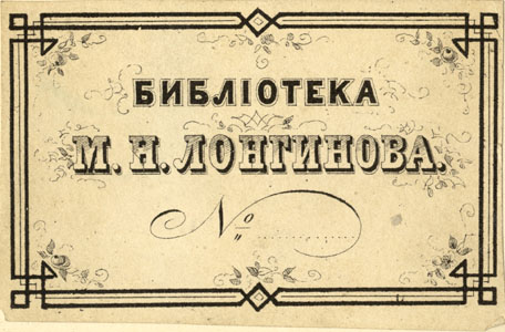 Nelinurkses ornamenteeritud raamistuses keskel: БИБЛIОТЕКА / М.Н. ЛОНГИНОВА. / №