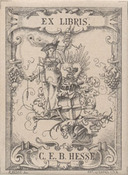 Nelinurkses voluutide ja viinamarjadega kaunistatud raamistuses vapp seisva naisefiguuriga. Joonise all vasakul signeering: R. HESSE fec. all paremal: ЛИТ. ШВАРЦЪ, СПБ. joonises all keskel: C. E. B. HESSE ülal paremal: EX LIBRIS.;"Иваск