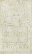 Krooniga naisepea ja avatud raamat. Joonises keskel: EX LIBRIS / И. И. / ЗАГРЯЖСКАГО
