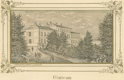Eesti, Tartu, Toomemägi (Tartu), kohavaated, linnavaated, Tartu Ülikool, Tartu Ülikool. Kliinikum, hooned, kõrgkoolihooned, baltisaksa, kunst, graafika, litograafia, 19. saj.