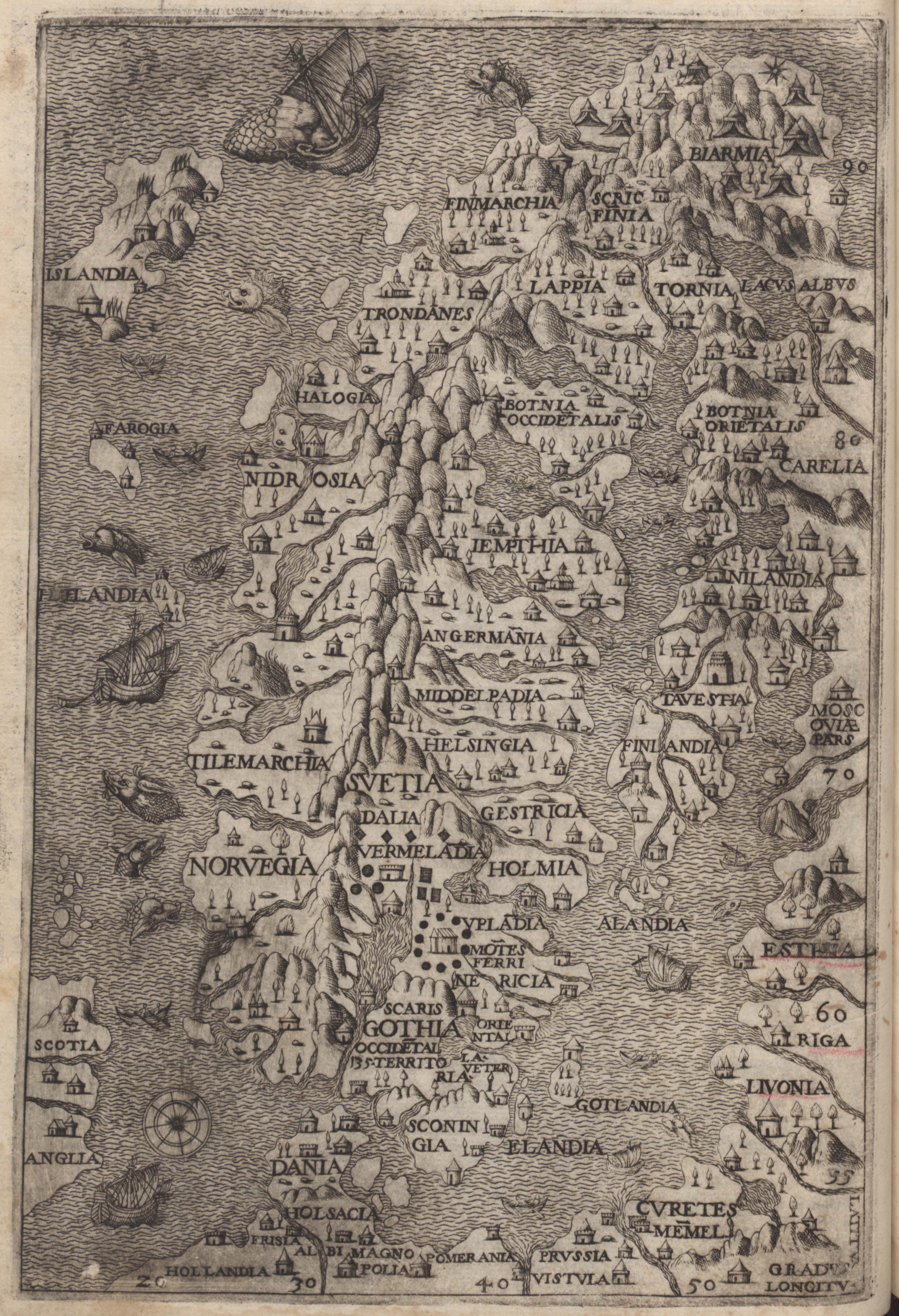 Kaart raamatust: Olaus Magnus. Historia delle genti et della natura delle cose settentrionali... Veneetsia, 1565 ; enne 1. lk.