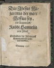 Das Jhesus Nazarenus der ware Messias sey. Ein Sendbrieff, Rabbi Samuelis von Jsrael Derhalben die Jüden auff keinen andern warten dürffen