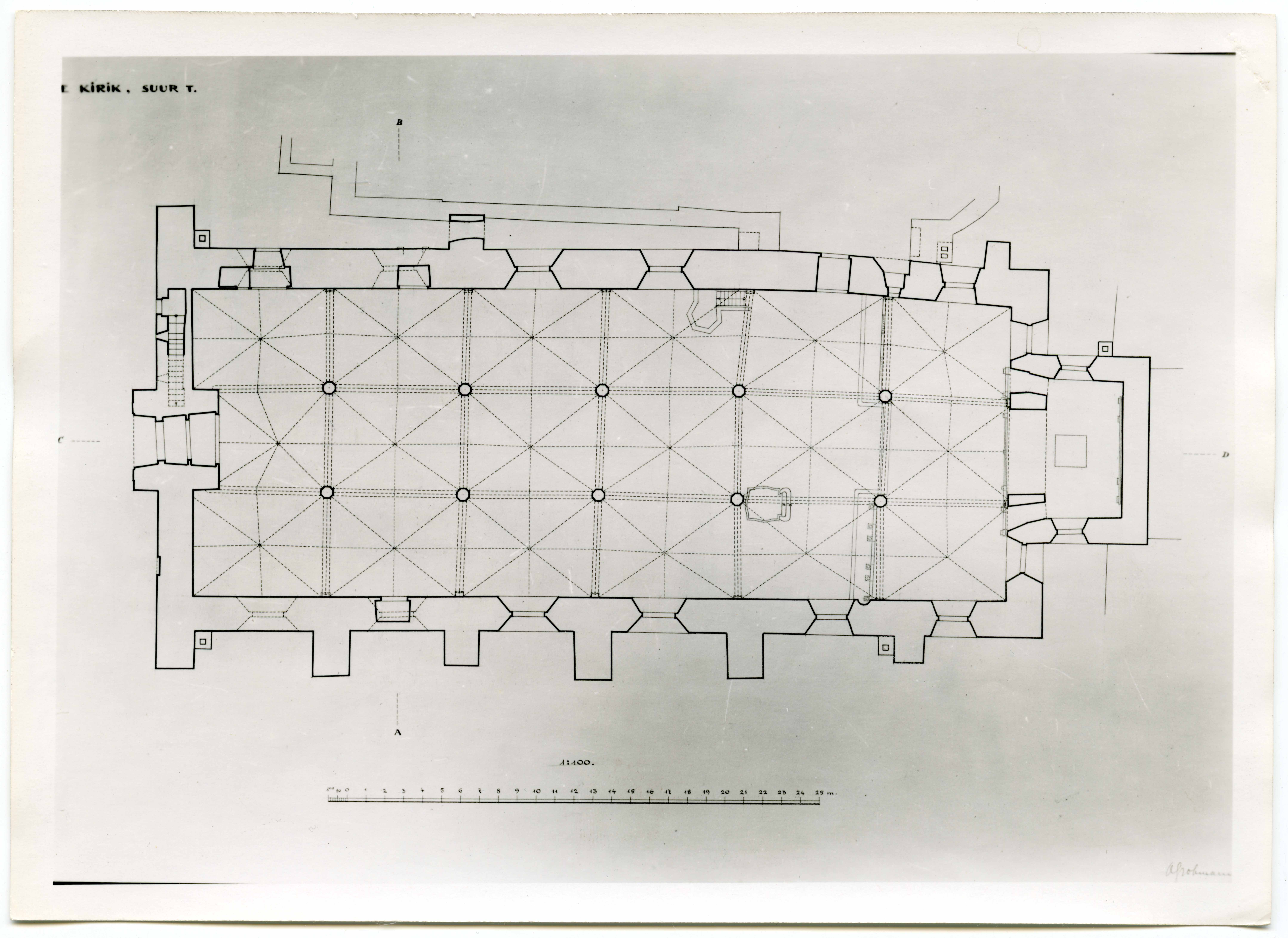 Narva. Õigeusu Issandamuutmise peakiriku (alates 1708.a) põhiplaan mõõtkavaga. Koostanud O. Grohmann 1934.a.
