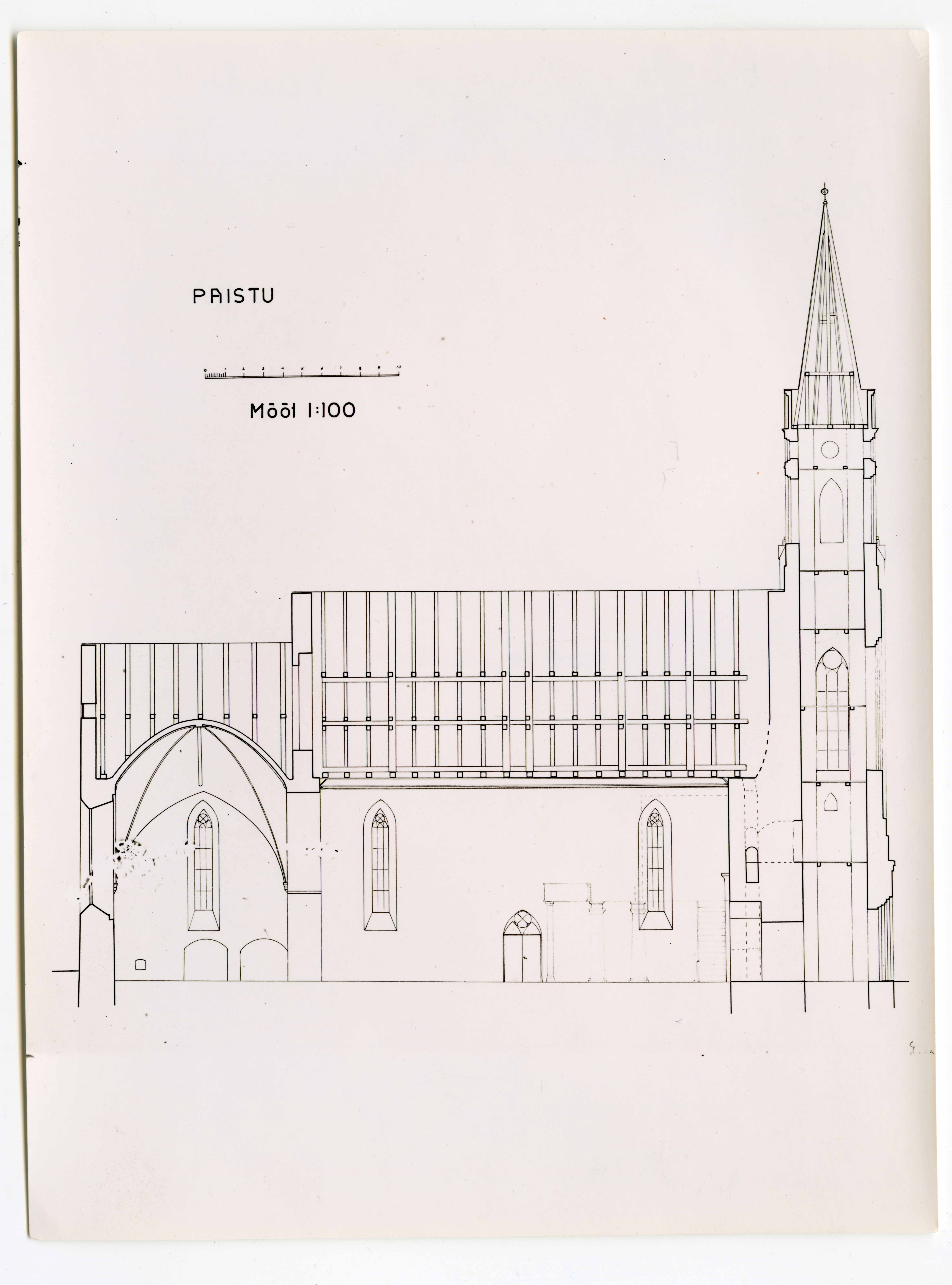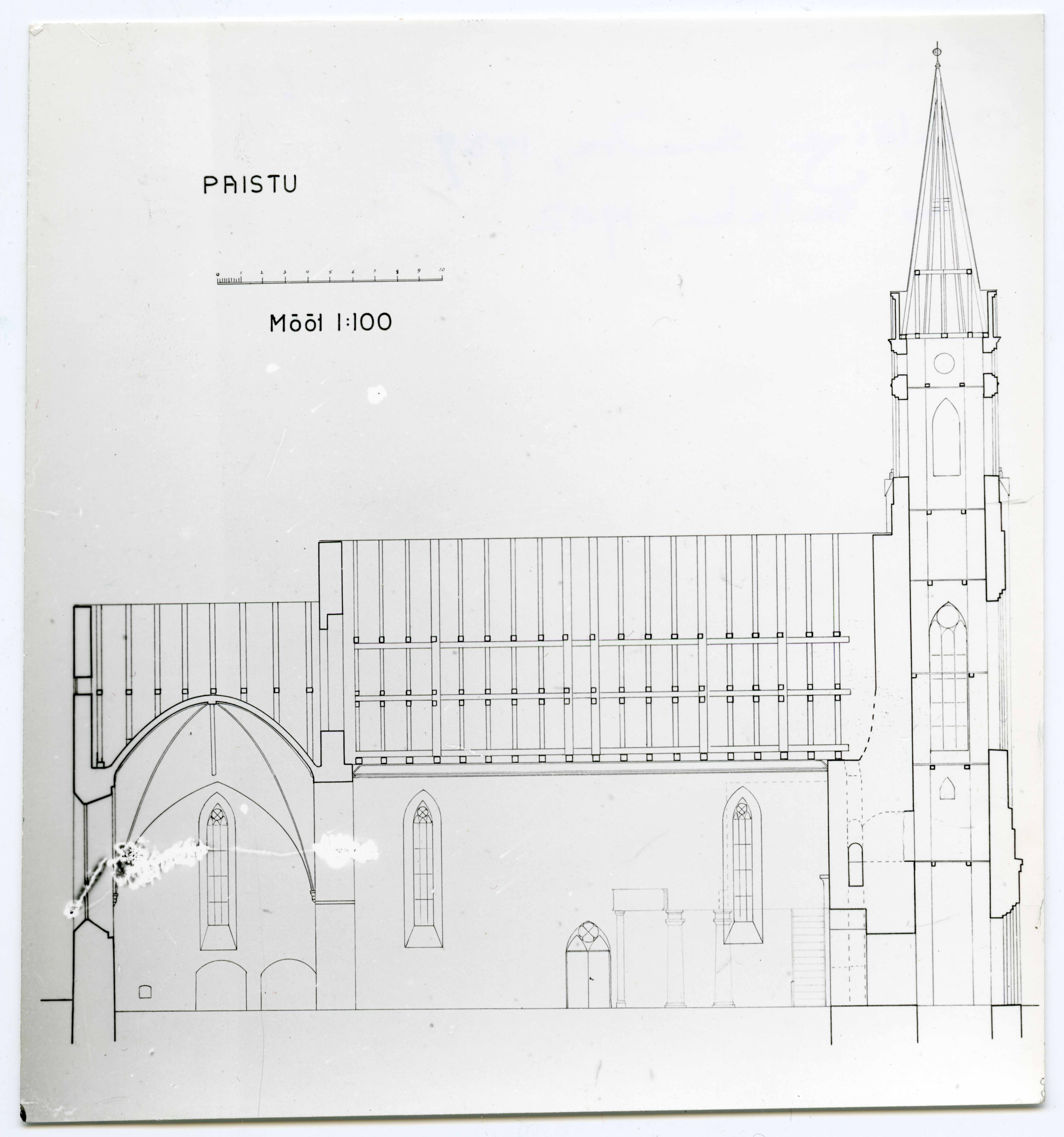 Paistu Maarja kiriku pikilõige mõõtkavas 1:100. Koostanud E. Saadre 1939.a.