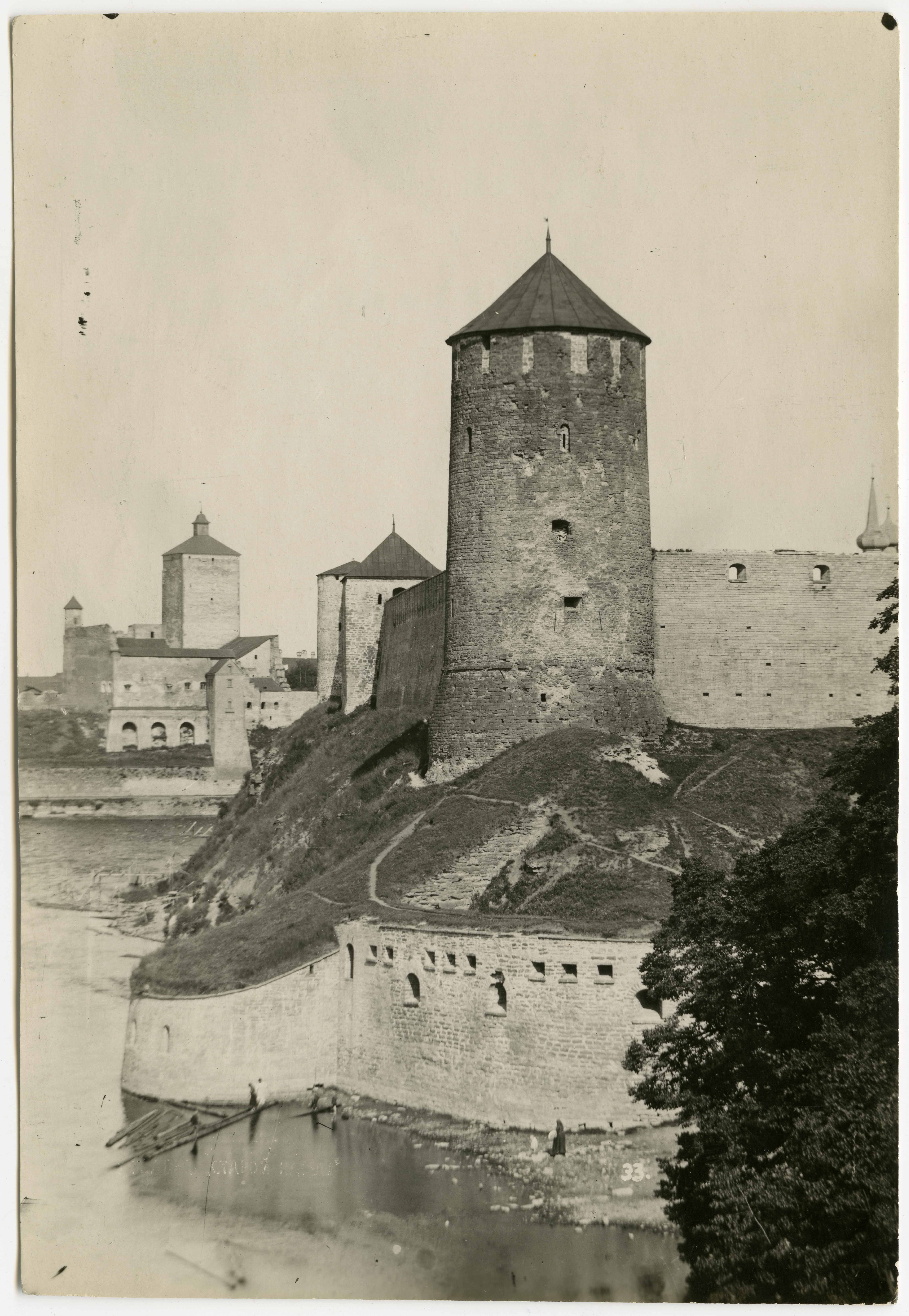 Vaade Ivangorodi kindluse Vesitornile O-st. Tagaplaanil Hermanni kindlus