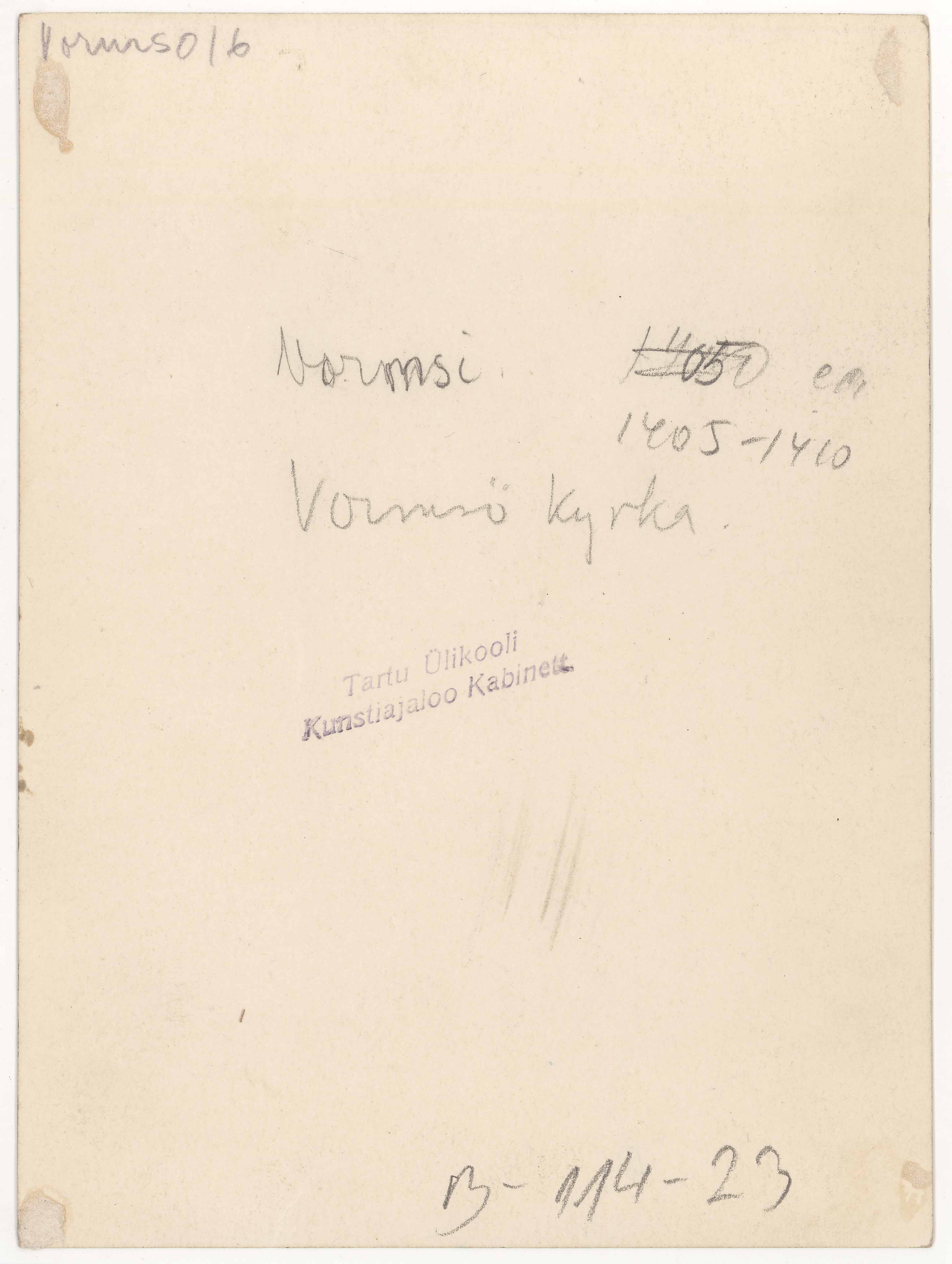 Tekst foto tagaküljel: Wormsö 16. Vormsi. Vormsö kyrka 1405-1410. Tempel: Kabinett