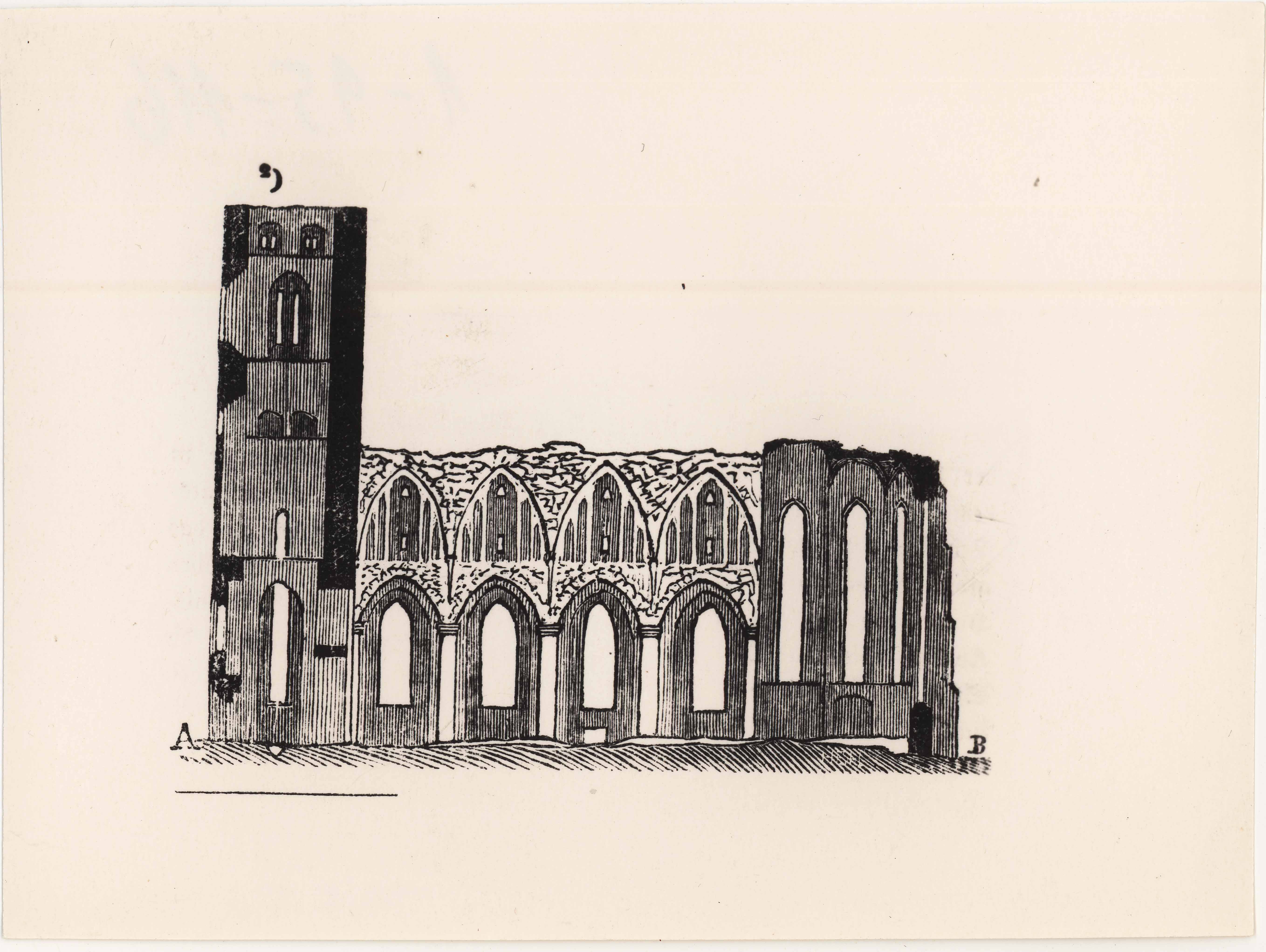 Tartu. (Vana) Maarja kirik (hävinud 1775, lammutatud 19. saj algul). Kiriku pikilõige 1763.a jooniselt