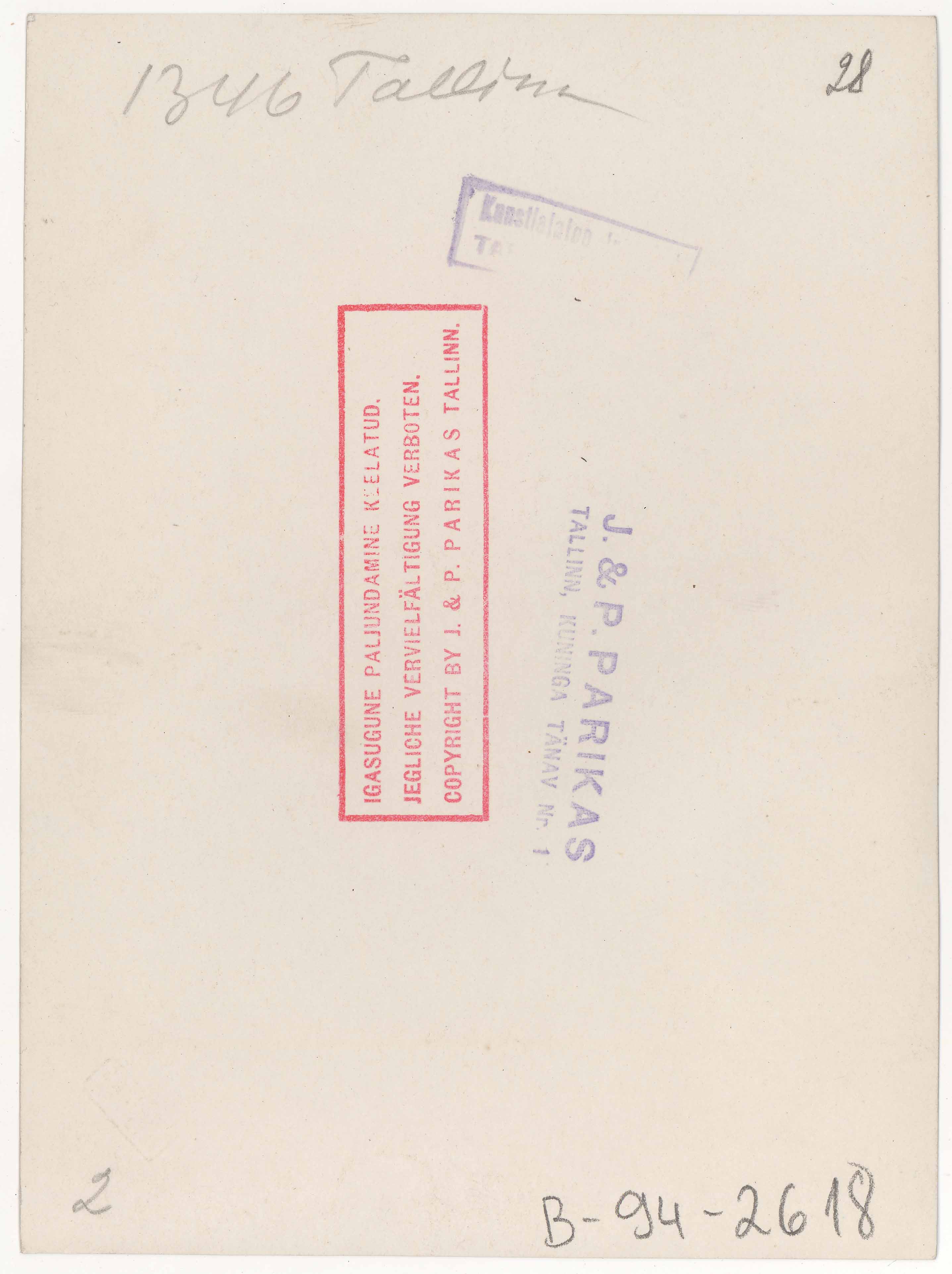 Tekst foto tagaküljel: 1346 Tallinn. Templid: J&P; Instituut
