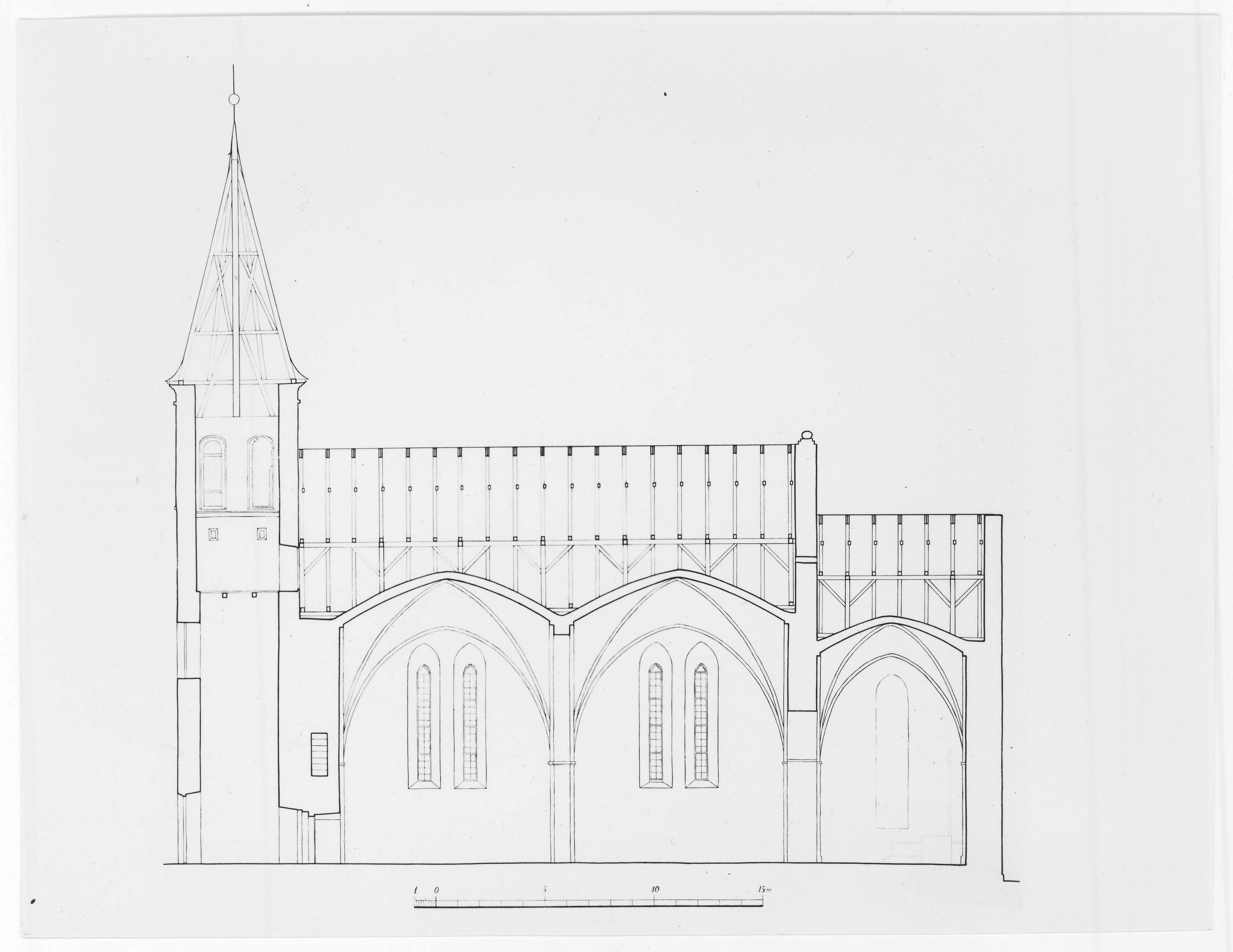 Hanila Pauluse kirik. Pikilõige vaatega N-sse. Koostanud 1943 J. E. Armolik