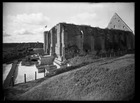 Pirita kloostri idaosa arheoloogilised uurimistööd. Vaade kloostrikirikule ning restaureeritud ja konserveeritud müüridele N-st