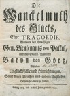 Die Wanckelmuth des Glücks, Eine Tragoedie, Worinnen des ehemaligen Gen. Lieutcnants von Patkul, Und des Staats-Ministers Baron von Görtz, Besondere Unglücksfälle und Hinrichtungen, Samt deren Ursachen und andern Umständen Gesprächs-weise zu finden