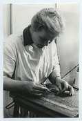 Tartu ülikooli raamatukogu restauraator Aime Espenberg Vanemuise tn. 33 restaureerimislaboratooriumis töötamas