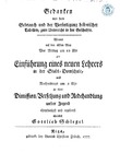 Gedanken von dem Gebrauch und der Verfertigung historischer Tabellen, zum Unterricht in der Geschichte : Womit auf den eilsten May Wor Mittag um 10 Uhr zur Einführung eines neuen Lehrers in der Stadt-Domschule, und Nachmittags um 2 Uhr zu einer Dimission, Versetzung und Redehandlung unsrer Jugend ehrerbietigst und ergebenst einladet