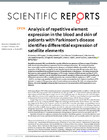 Repetitive elements (RE) constitute the majority of the human genome and have a range of functions both structural and regulatory on genomic function and gene expression. RE overexpression has been observed in several neurodegenerative diseases, consistent with the observation of aberrant expression of RE posing a mutagenic threat. Despite reports that associate RE expression with PD no