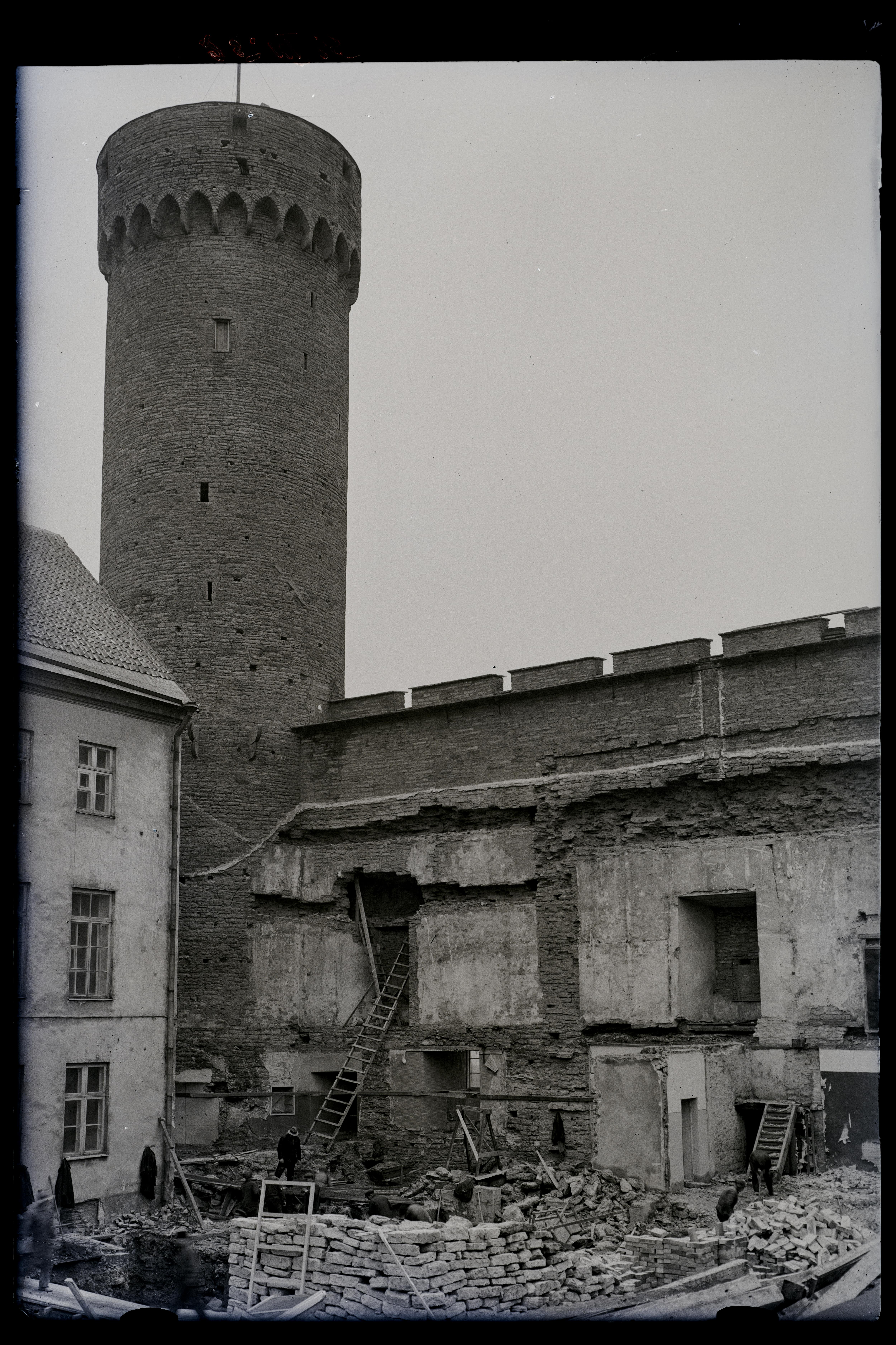 Tallinn. Toompea linnuse väljakaevamised 1935.a märtsis. Pika Hermanni torni vaade NO-st