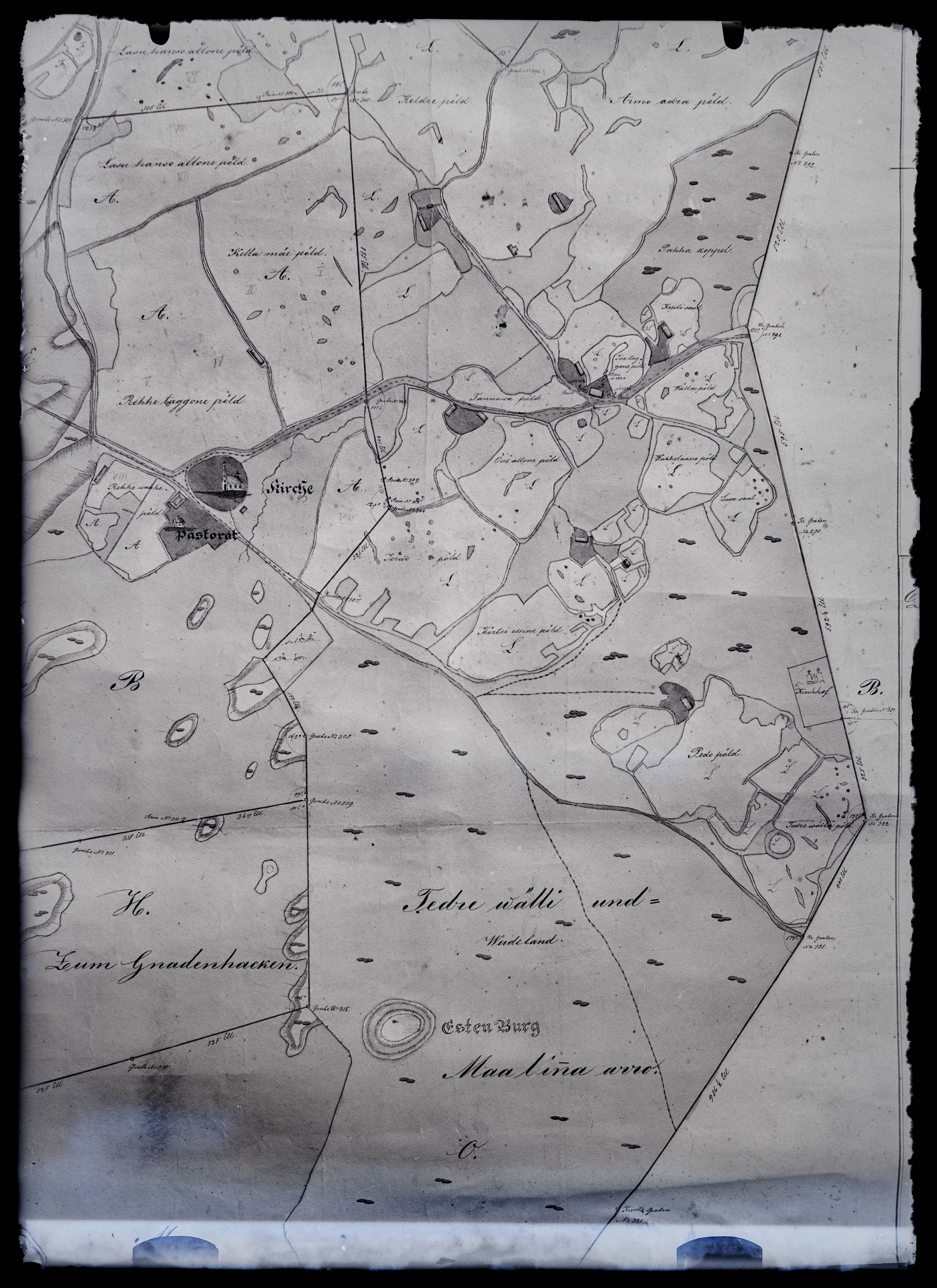 Tekst negatiivi ümbrikul: Valjala. Foto Arro 1924. Vana pastoraadi kaart. Tempel: Instituut