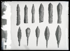 Tekst negatiivi ümbrikul: Viljandi. 1939 a. Kaevamisel leitud nooleotsad. Foto Selleke (1941). Tempel: Kabinett