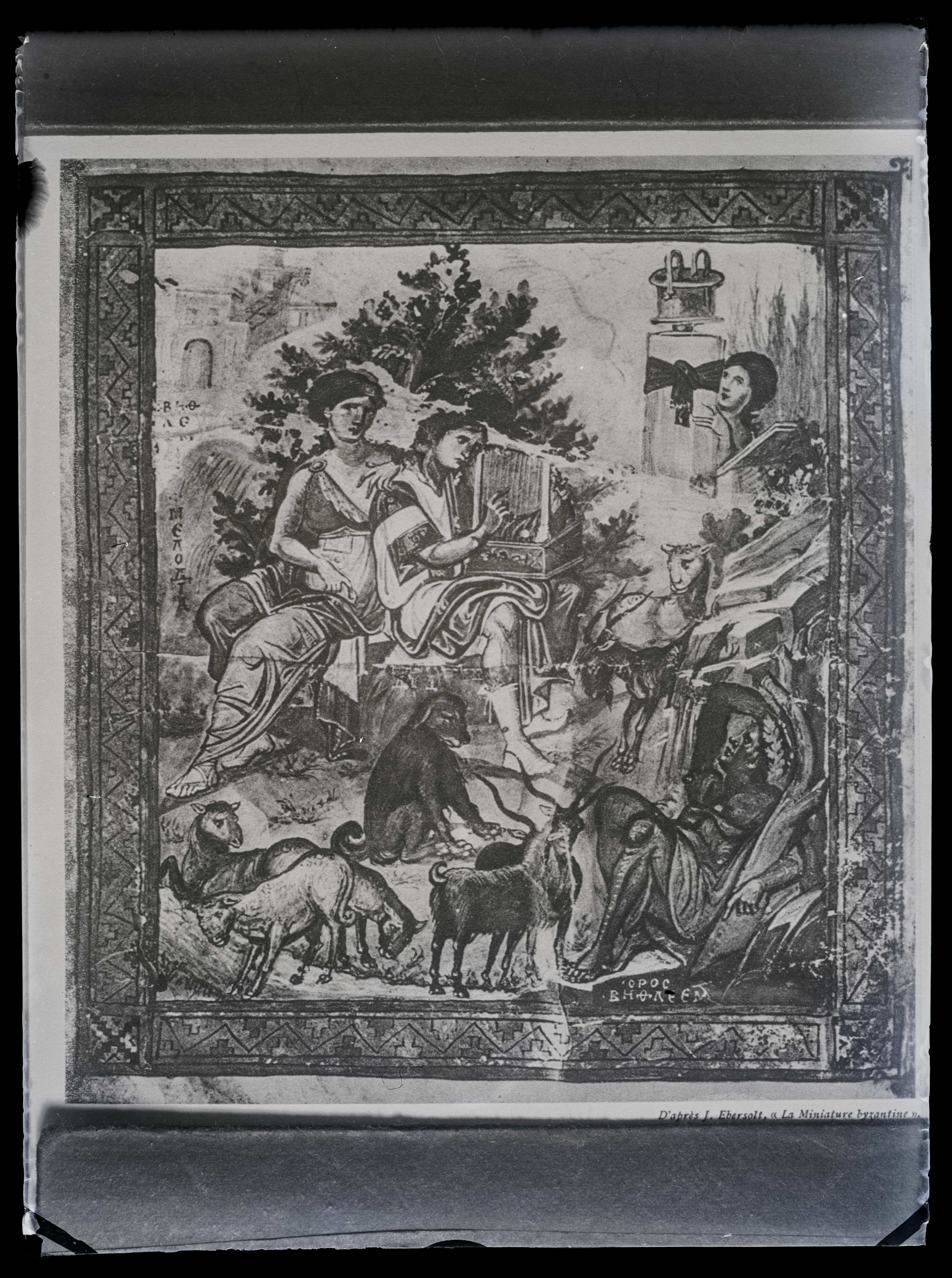 Tekst negatiivi ümbrikul: David karjasena X sajandi psaltri miniatüür. Tempel: Selleke