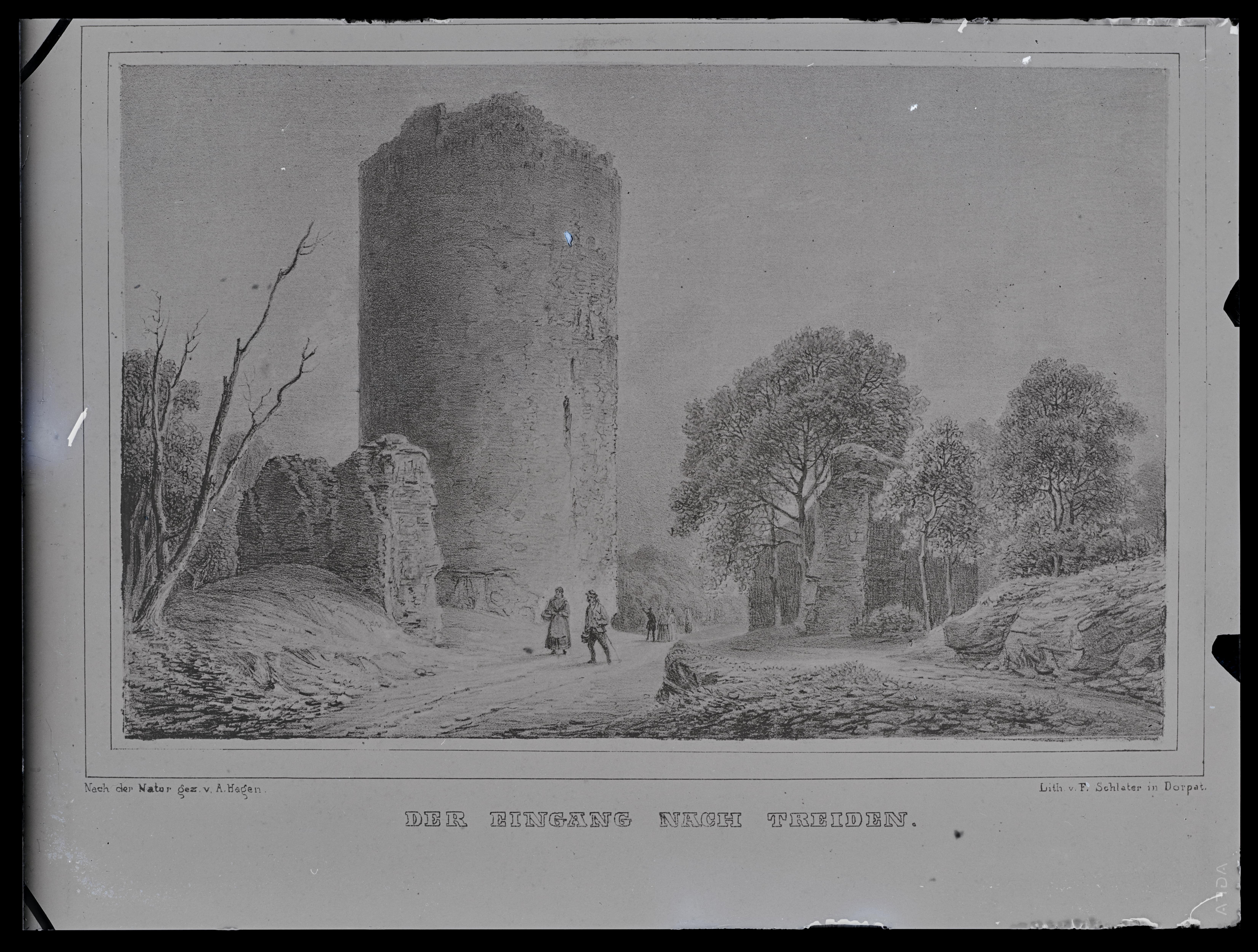 Tekst negatiivi ümbrikul: Hagen. Der Eingang nach Treiden