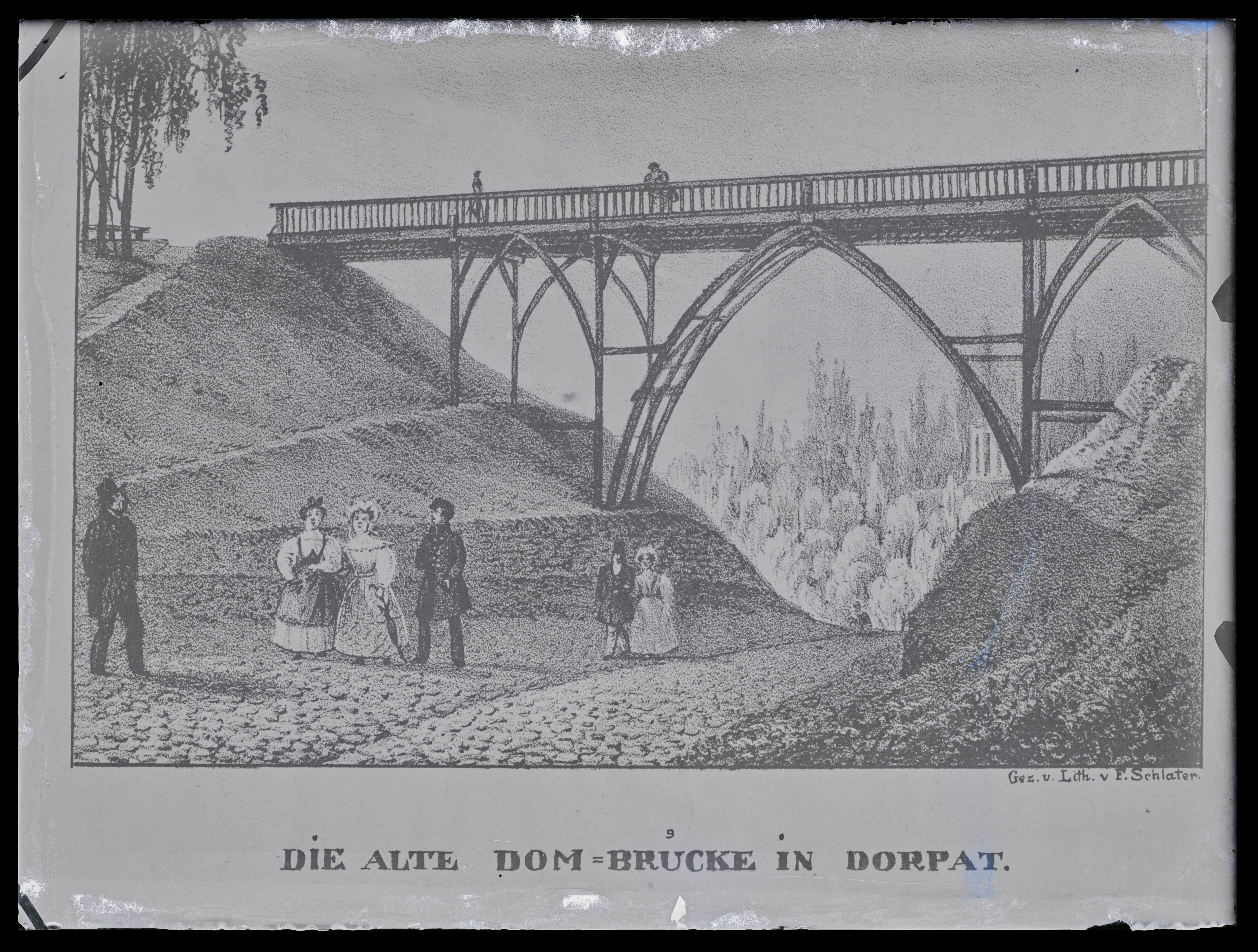 Tekst negatiivi ümbrikul: Schlater. Kuradi sild. II 3 Die alte Dom-Brücke in Dorpat. Ansichten von Dorpat 1833