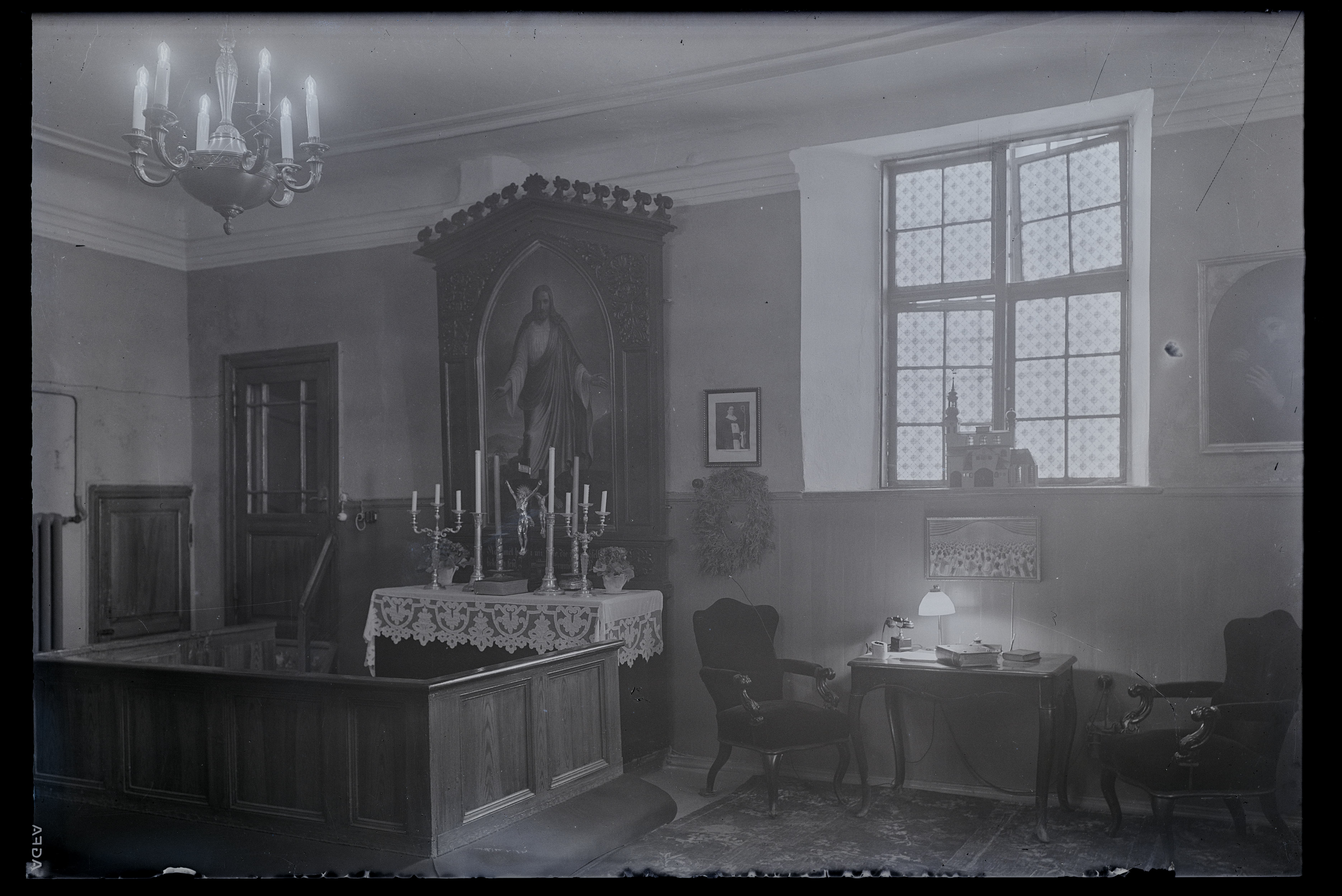 Altariga ruumi (kirikutegelase töökabinet) interjöör (Eestis; täpsem asukoht määramata)
