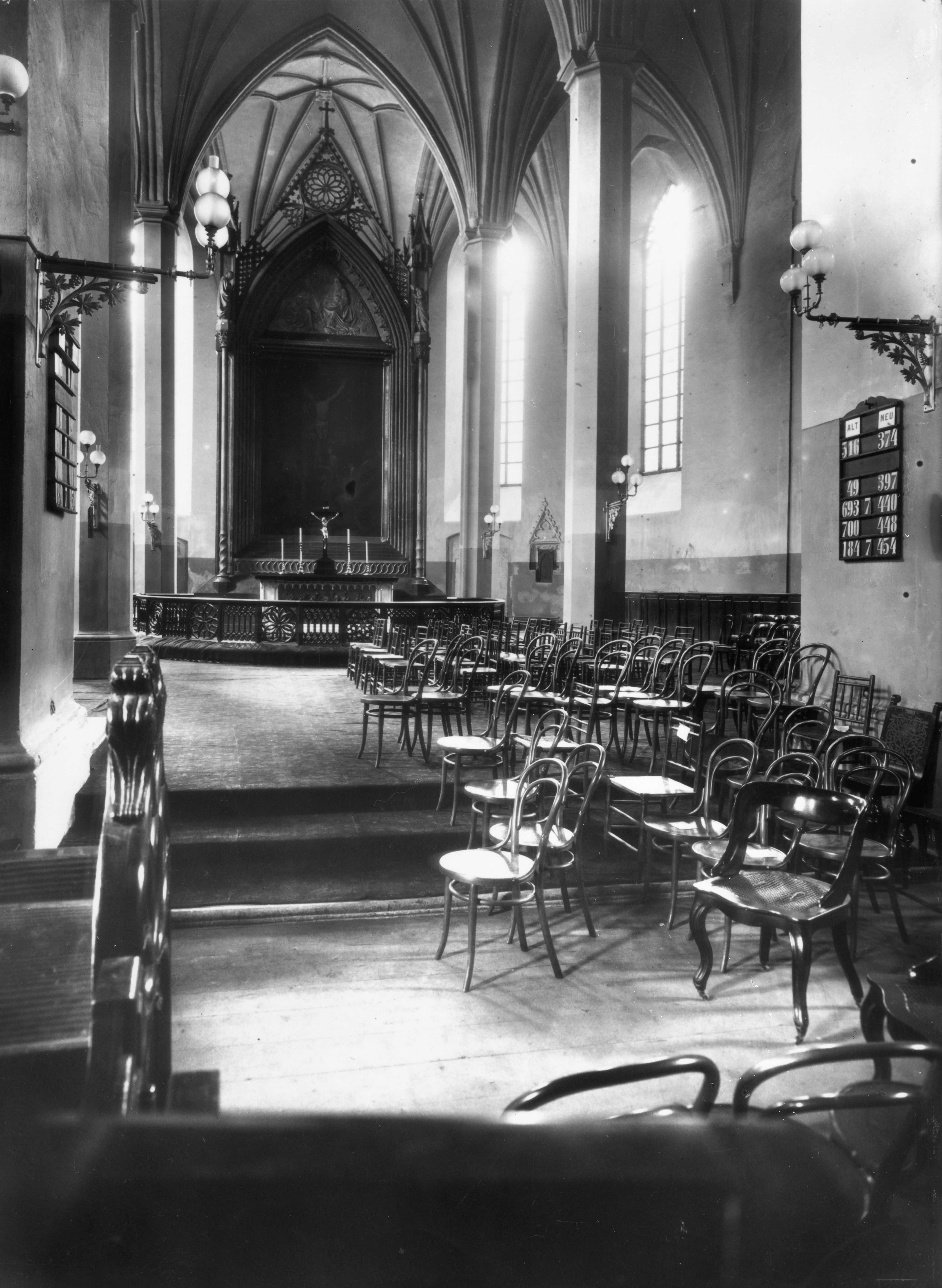 Tekst negatiivi ümbrikul: Hamini dep. Tallinn. Oleviste kirik. Altar, üldvaade. Foto Akel, 1929.