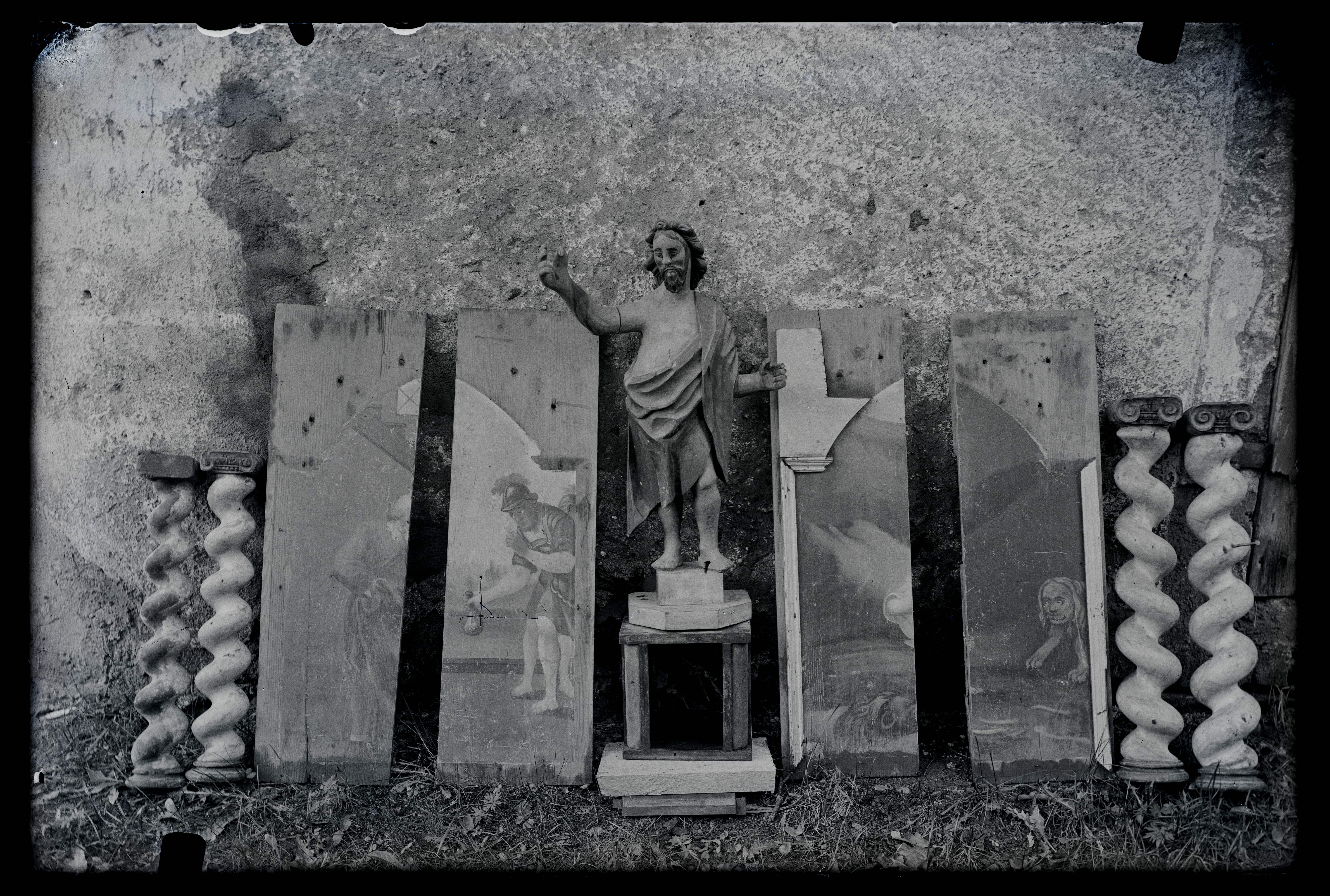 Tekst negatiivi ümbrikul: Kolga-Jaani. 1938.a. Vana altar. E. Saadre. Tempel: kabinett