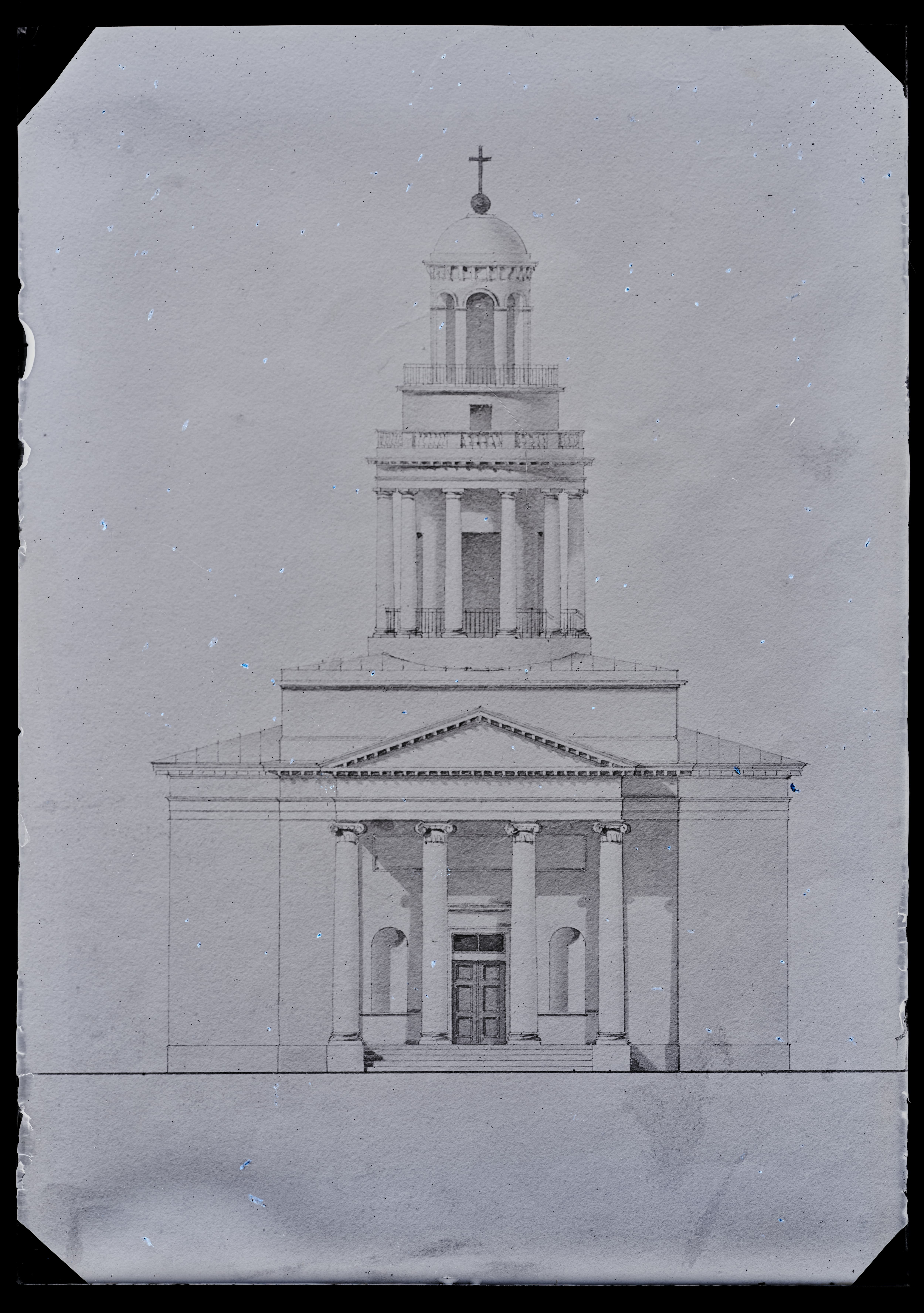 Tartu Ülikooli kiriku projekt. W-fassaadi joonis