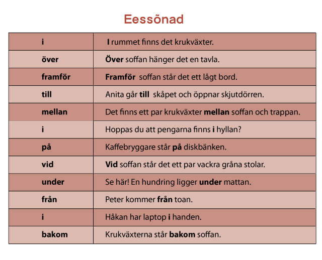 Kommentaaridega harjutusvara õppevideo Ruumi tähendusega prepositsioonid, postpositsioonid ja verbid juurde (rootsi keel)