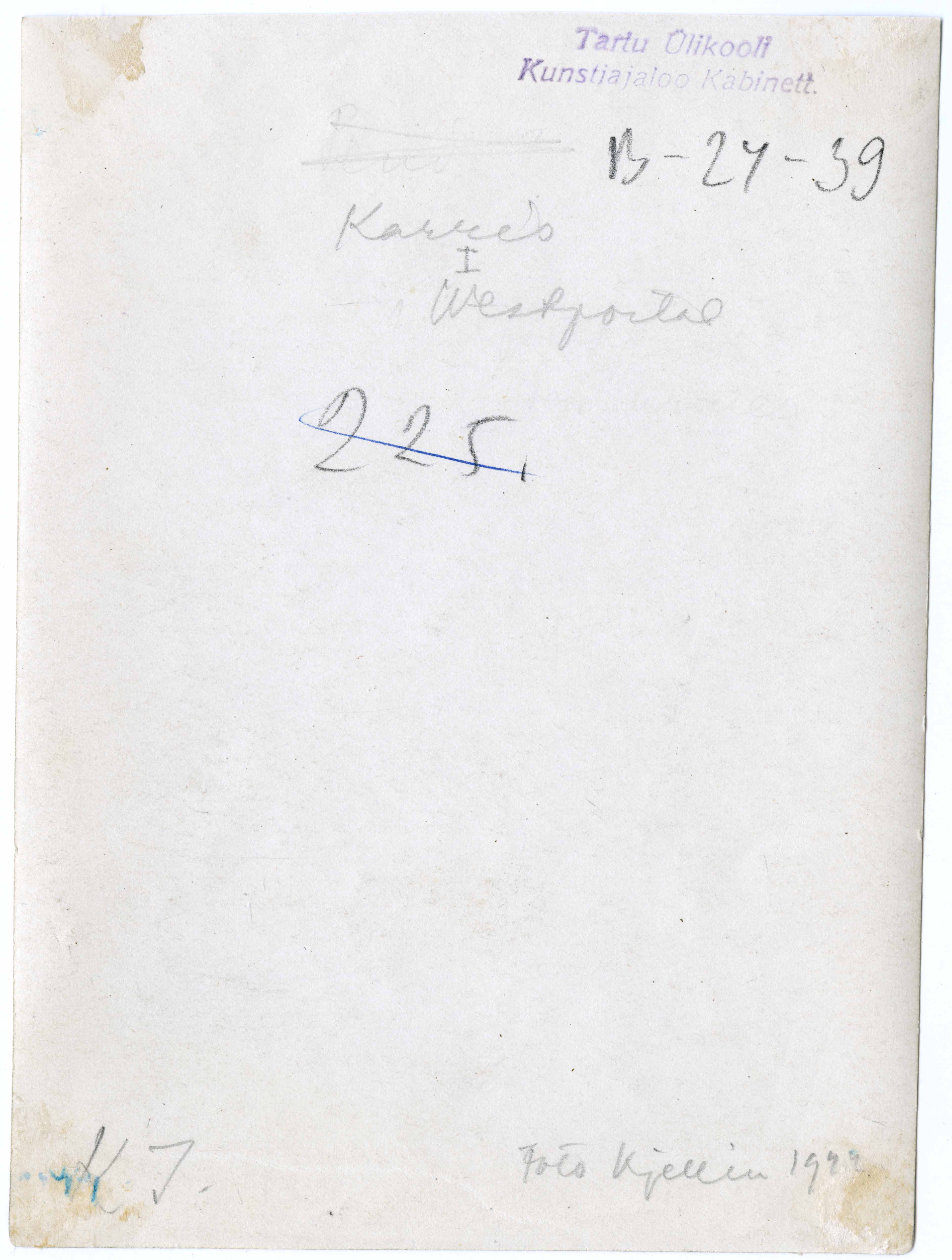 Tekst foto tagaküljel: Karris. Westportal. Foto Kjellin 1922. K. I. Tempel: Kabinett