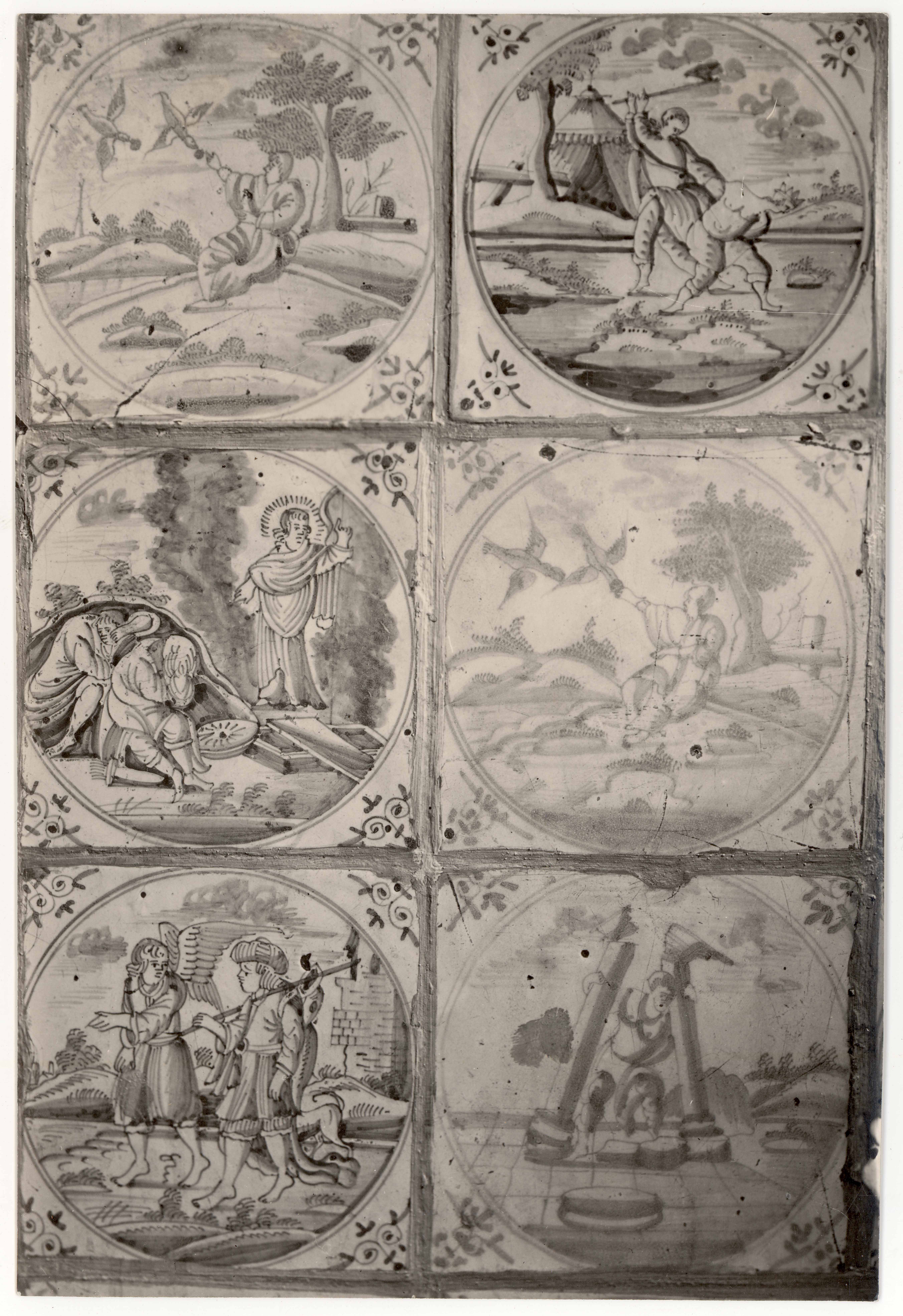 Narva. Eha tn 2. Hollandi seinakahlid (17. saj). Detail. Uue ja Vana Testamendi teemad. 6 stseeni
