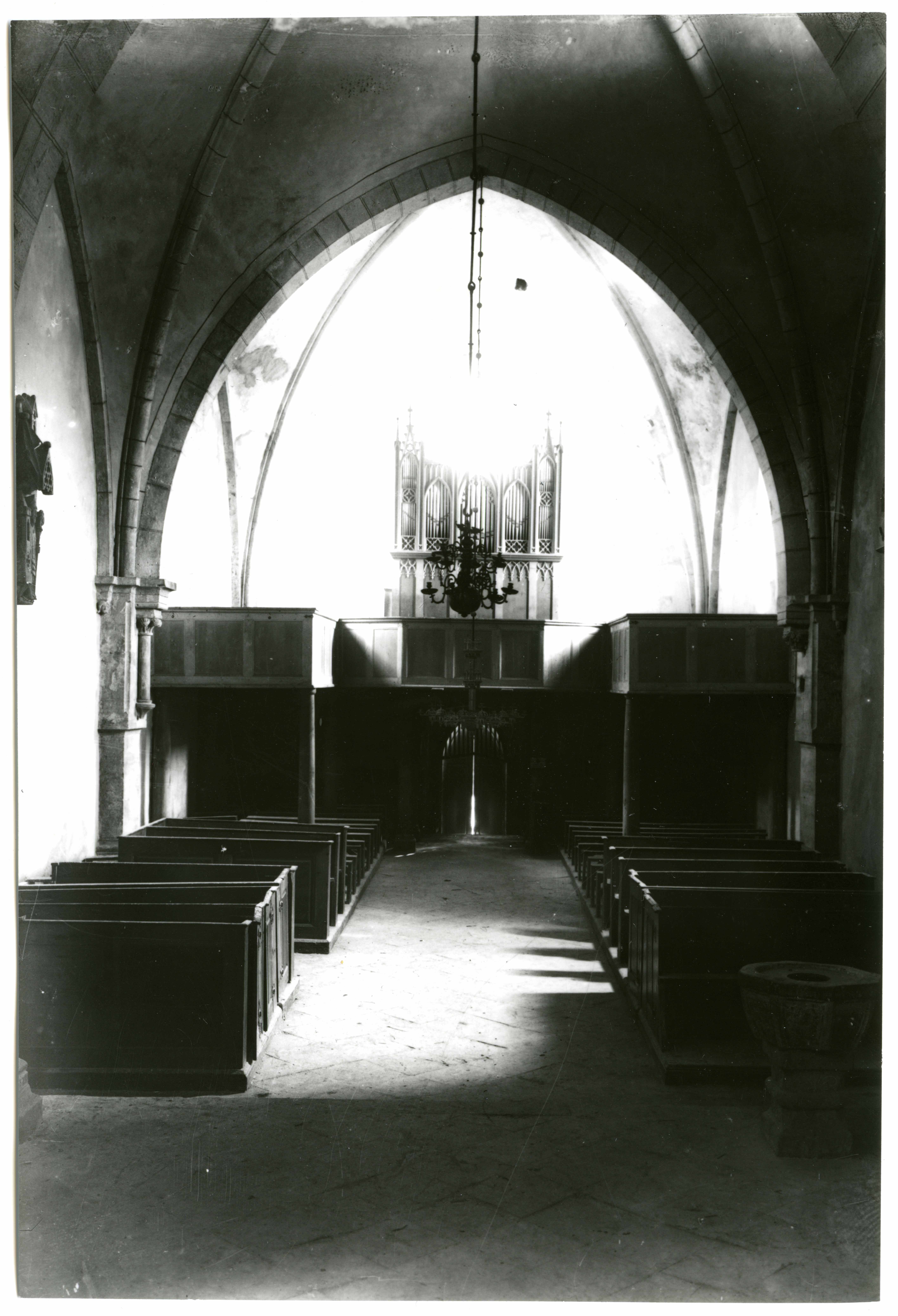 Karja Katariina ja Nikolause kirik. Pikihoone vaade koorist W suunas.