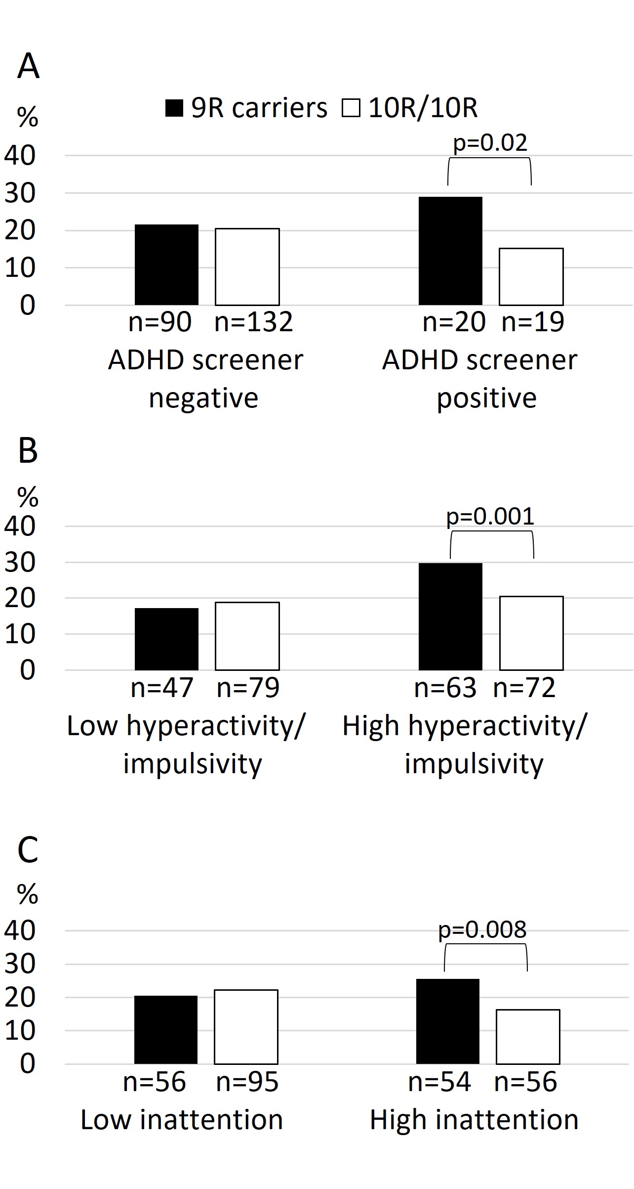 Higher level of ADHD symptoms is a significant risk factor in traffic, and carrying of the DAT1 9R allele appears to aggravate these risks.