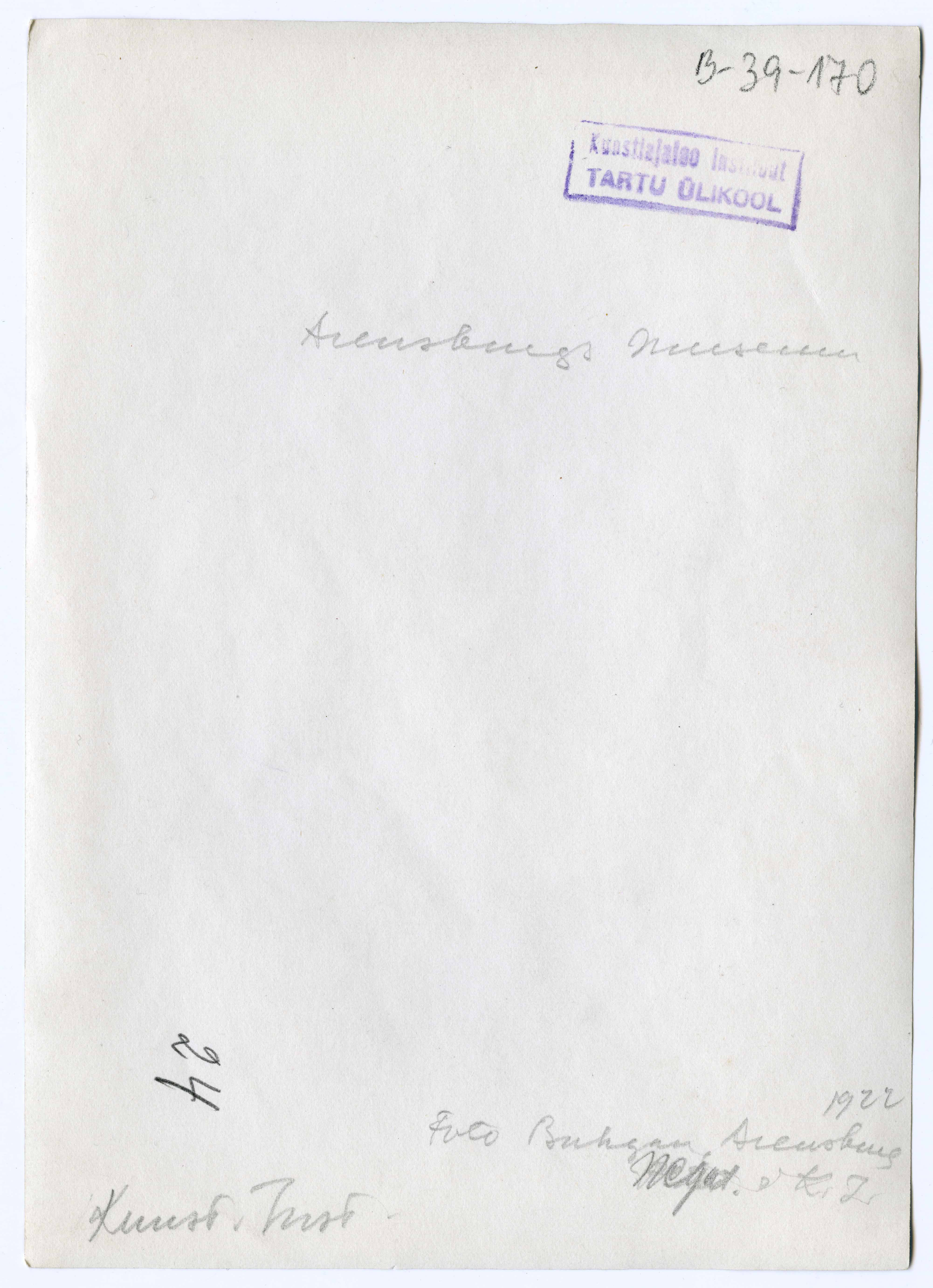 Tekst foto tagaküljel: Arensburgs Museum. Foto Buhgan, Arensburg 1922. Negat im K. I. Kunst. Inst. Tempel: Instituut