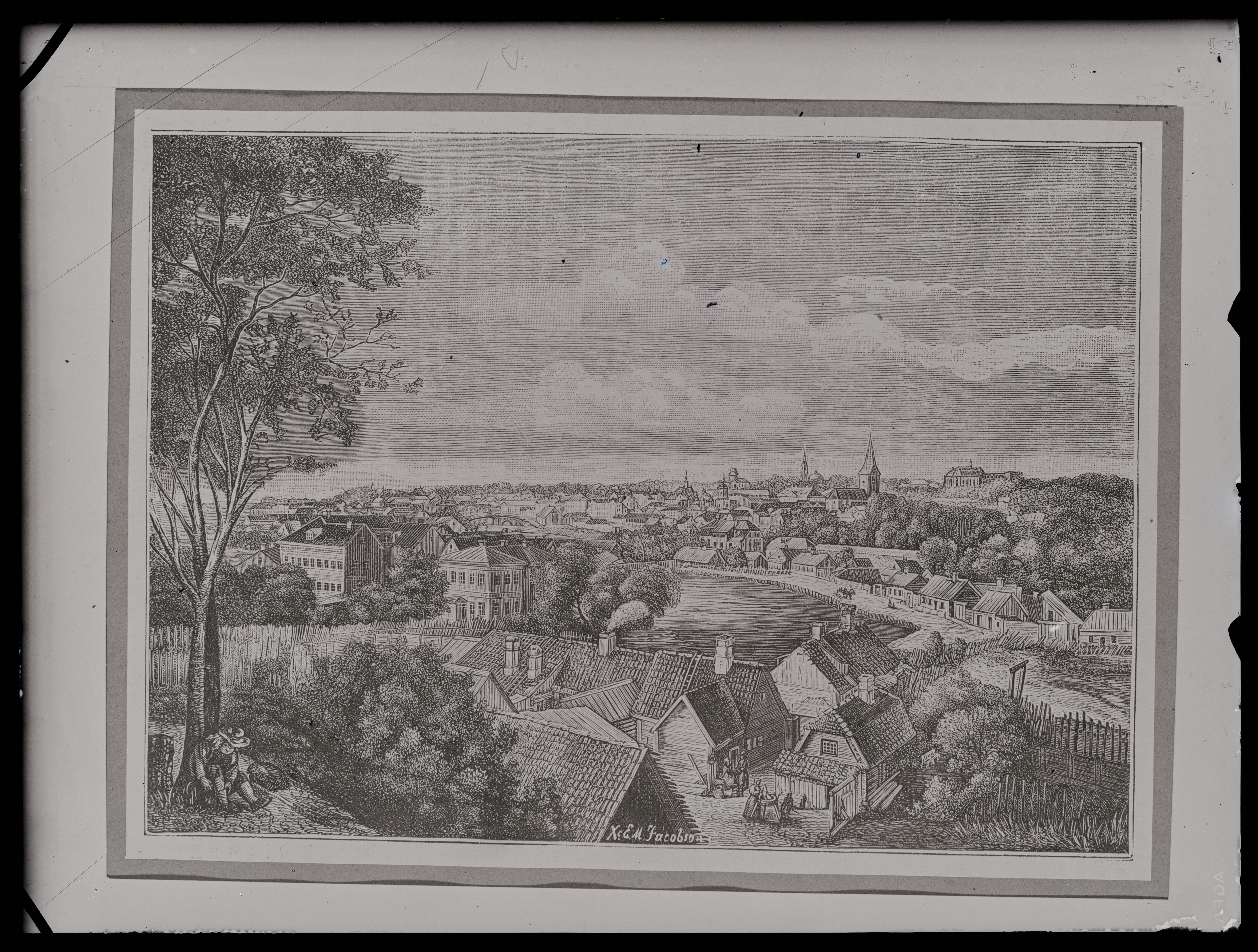 Tekst negatiivi ümbrikul: E. M. Jakobson. Tartu vaade (puulõige)