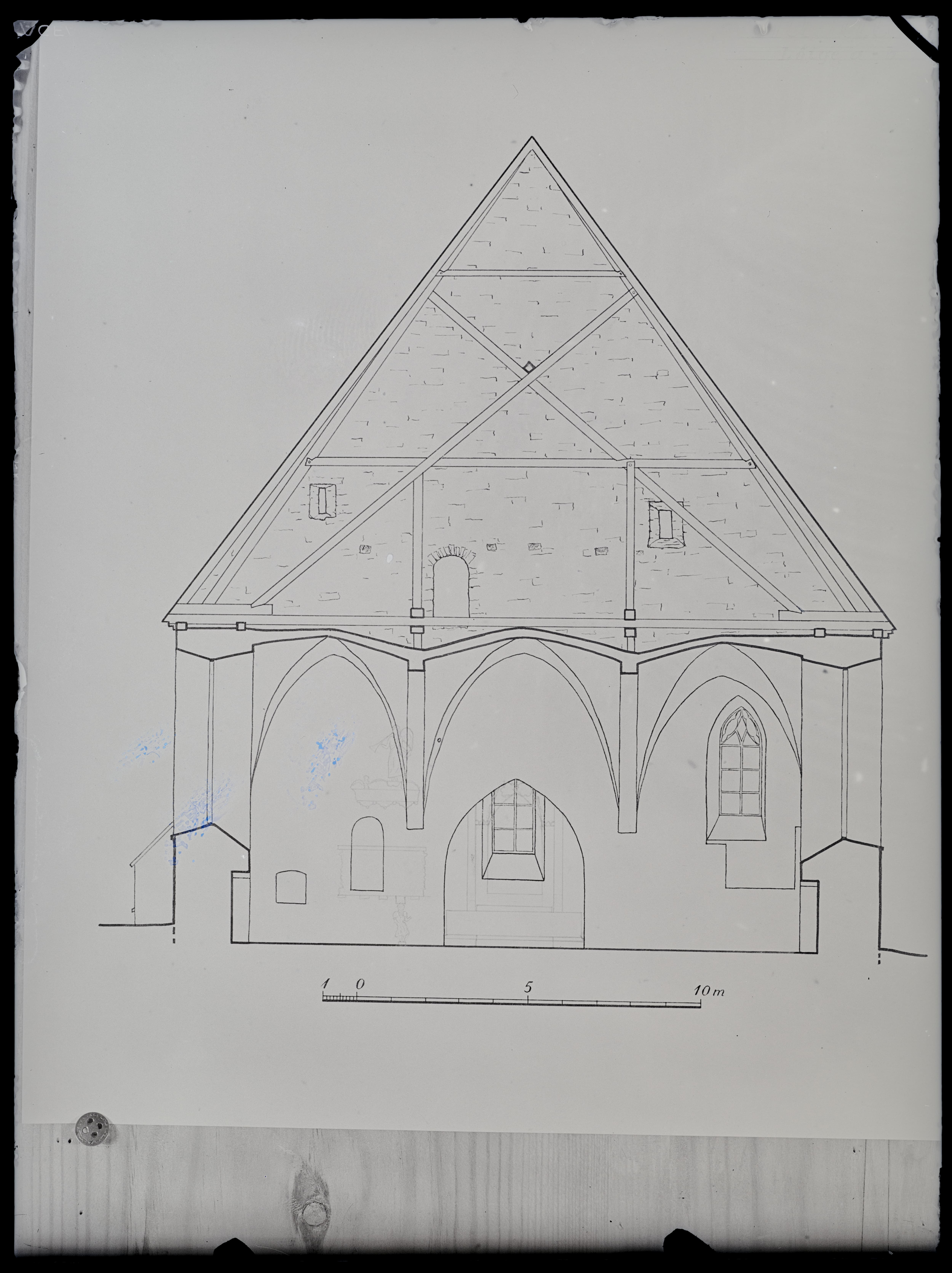 Haljala Püha Mauritiuse kirik. Pikihoone ristlõige mõõtkavaga