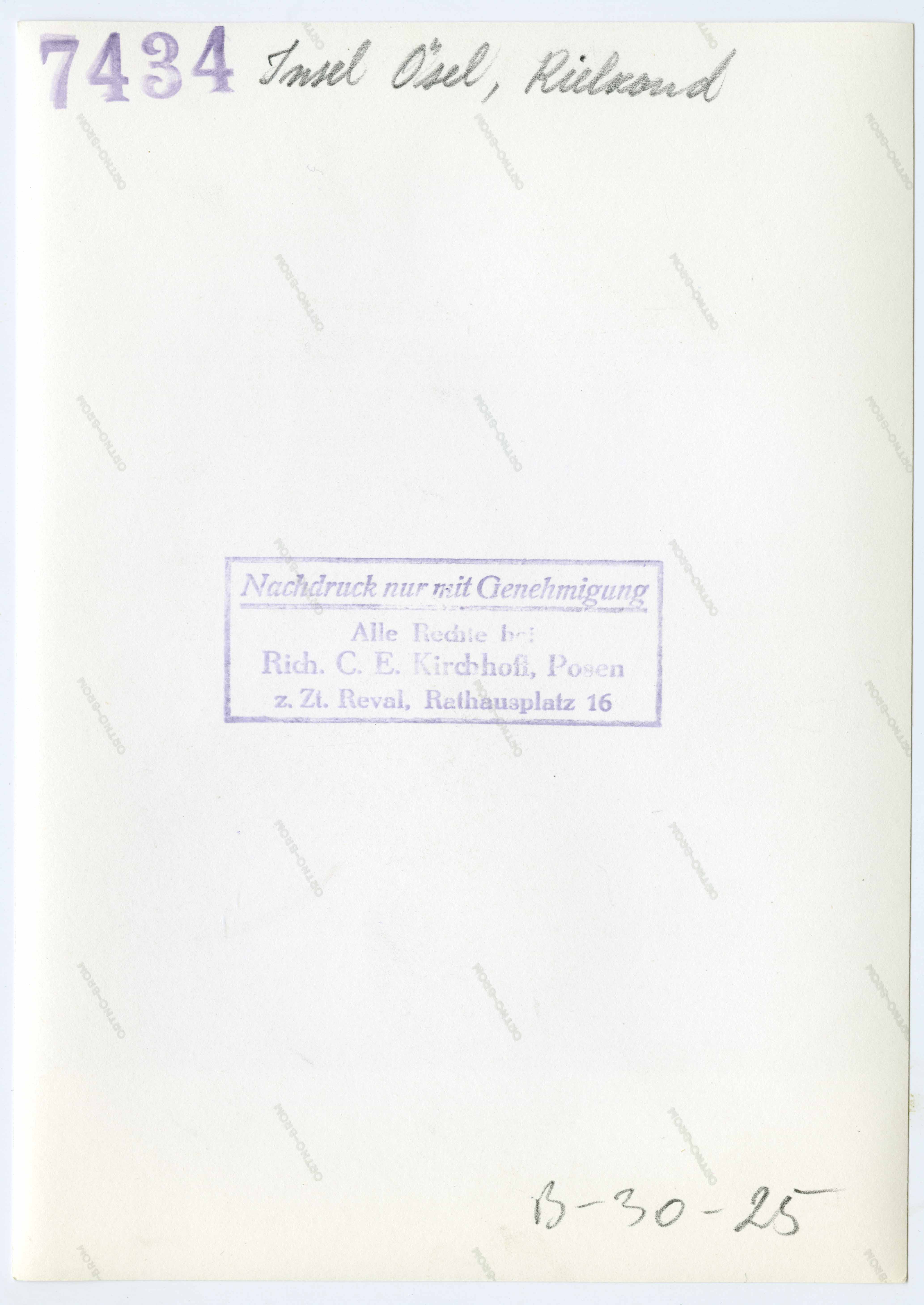 Tekst foto tagaküljel: Insel Ösel, Kielkond. Templid: Kirchhoff, 7434