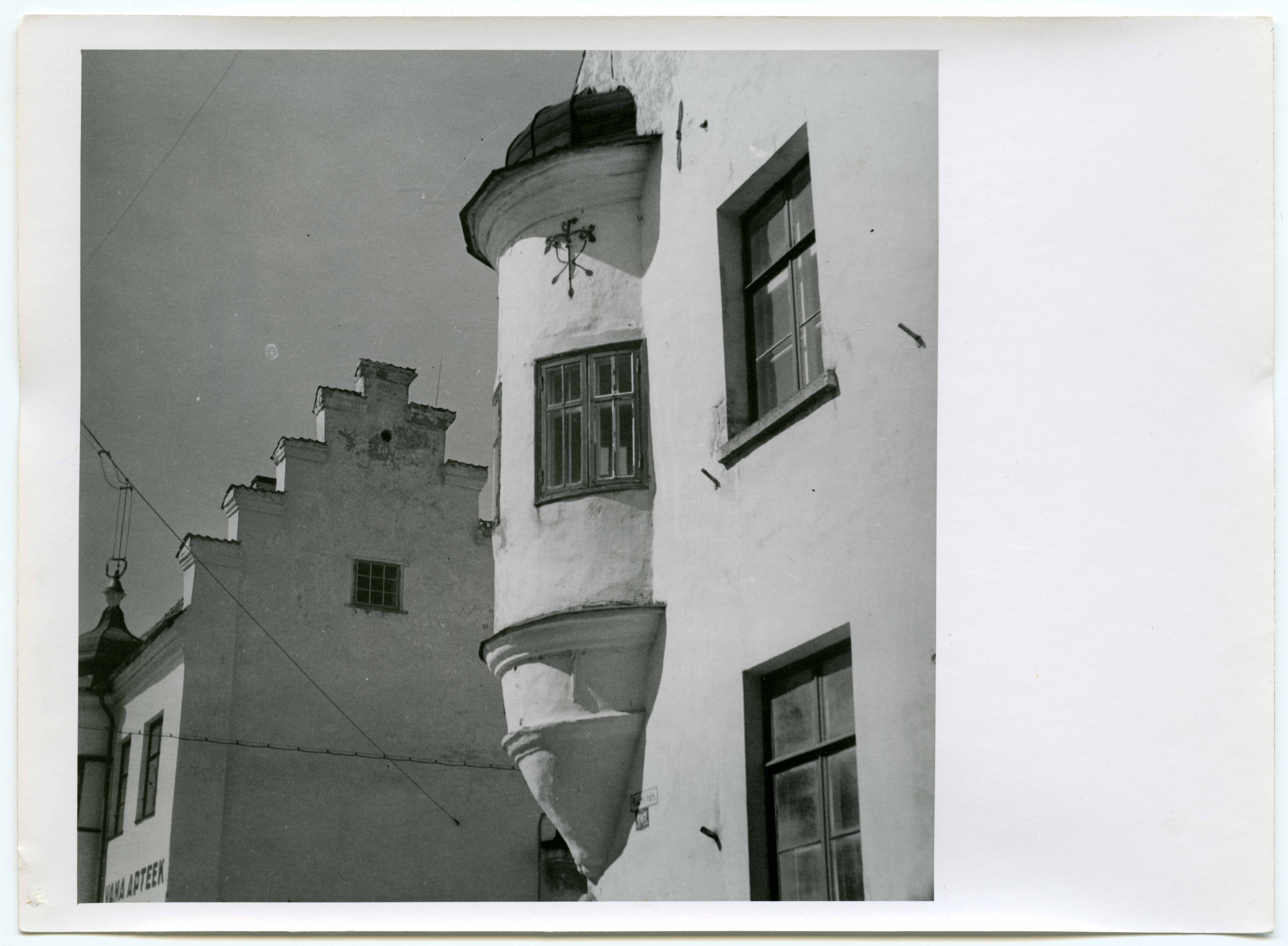 Narva. Heinrich Fonne maja erkeri vaade Rüütli tänavalt. Tagaplaanil B. Erichi maja astmesviil