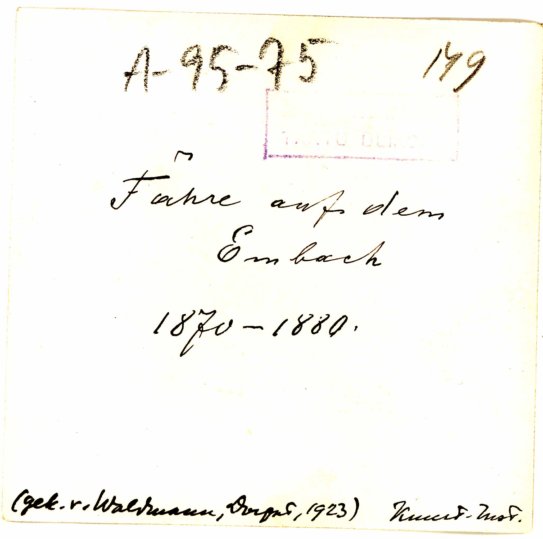 Tekst foto tagaküljel: Fähre auf dem Embach. 1870-1880. (gek v Waldmann, Dorpat, 1923) Kunst. Inst. Tempel: Instituut