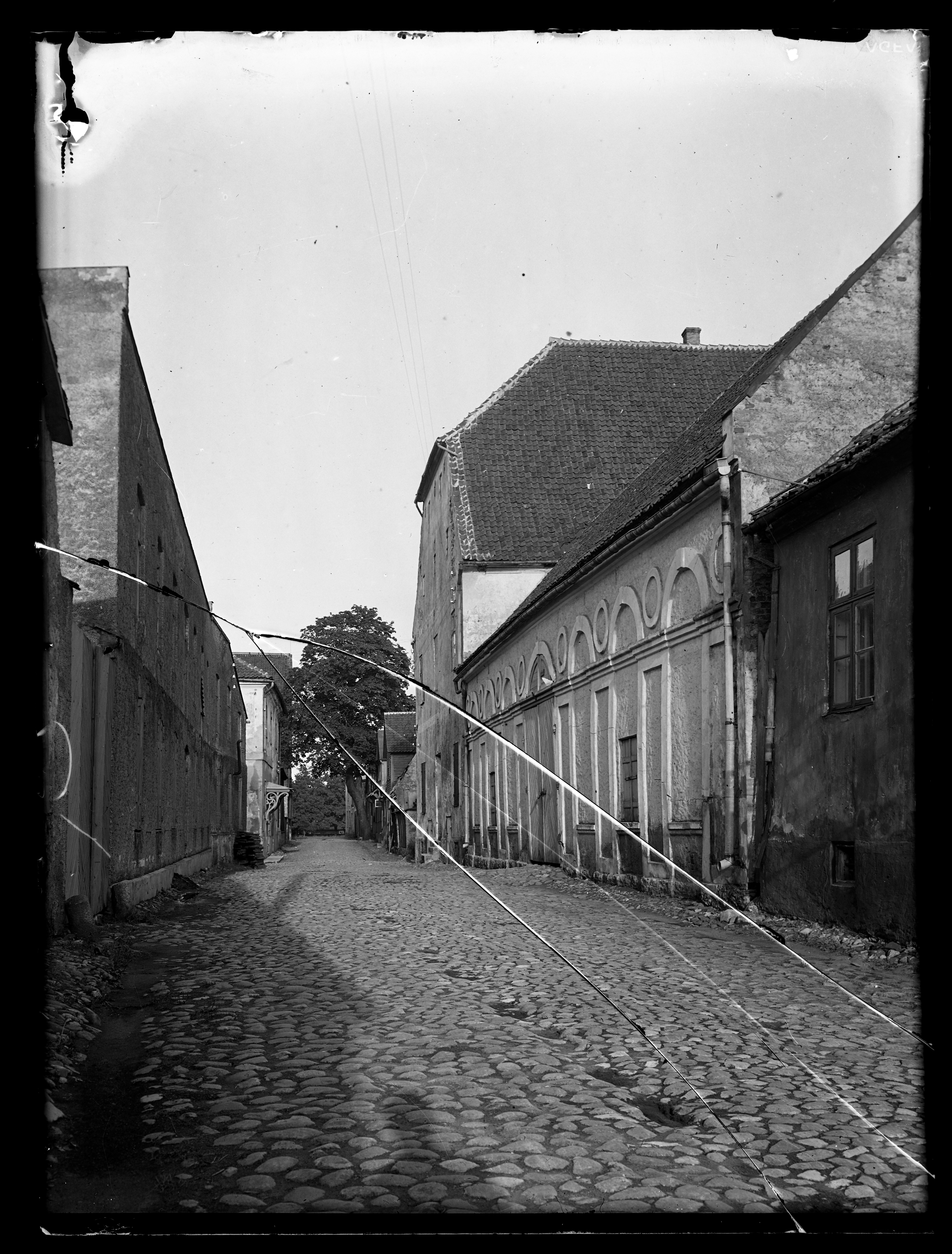 Tekst negatiivi ümbrikul: Pärnu. Pikk t. /paremal maja a.1647/. Foto Tuulse 1943. Tempel: Instituut