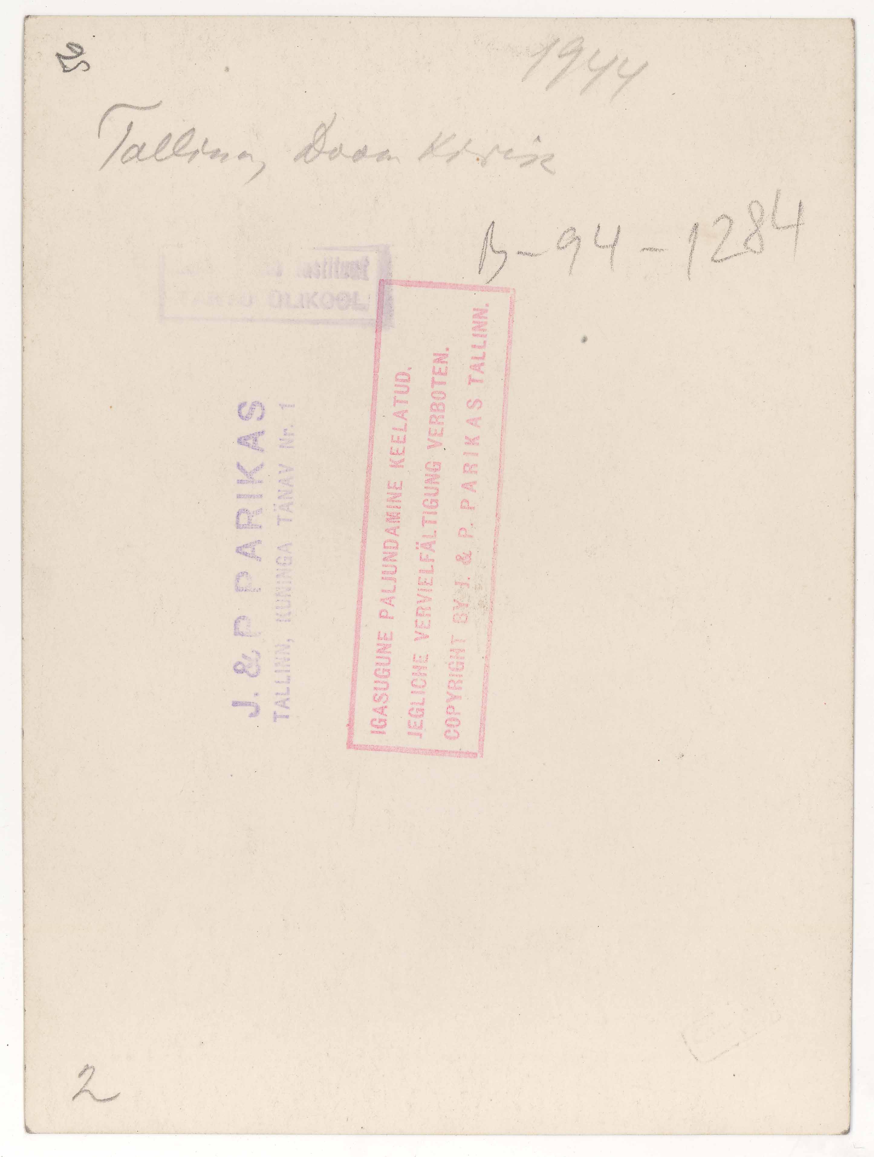 Tekst foto tagaküljel: 1944. Tallinn, Doomkirik. Templid: J&P; Instituut