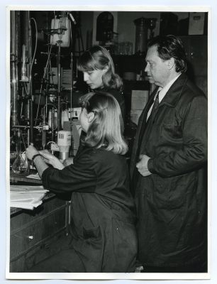 Ilomets, Tullio. Tartu ülikooli keemiaosakonna laboratooriumis üliõpilasi juhendamas
