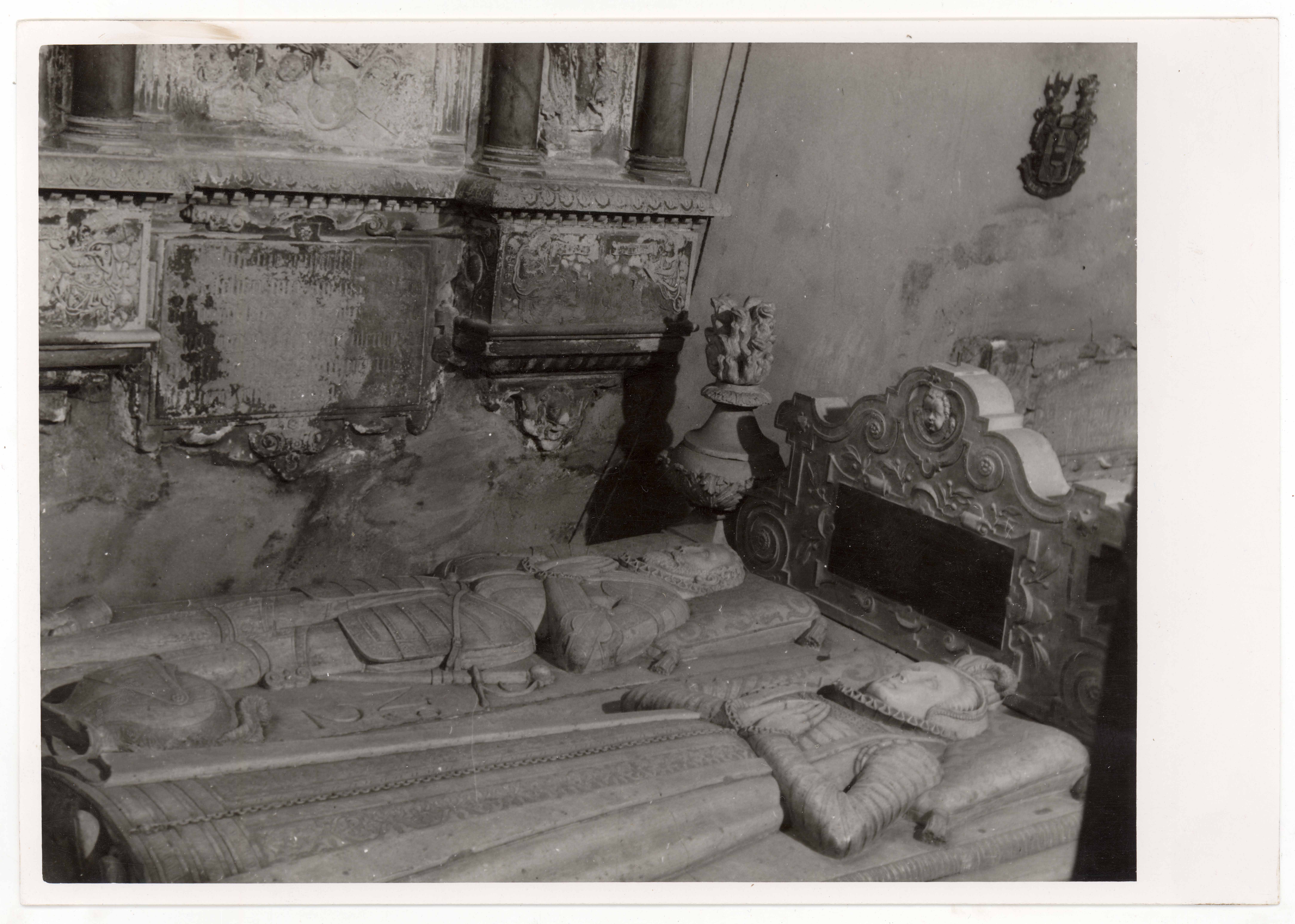 Tallinn. Toomkirik. Pontus de la Gardie hauamonument ja epitaaf. Pealtvaade sarkofaagile ja eestvaade epitaafi alumisele osale