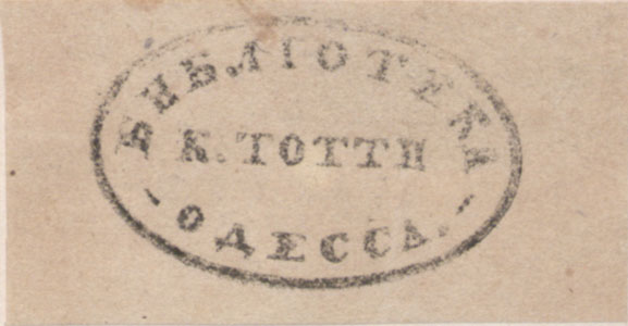 | dc.description | Ovaalis: БИБЛIОТЕКА / К. ТОТТИ / ОДЕССА. | |
