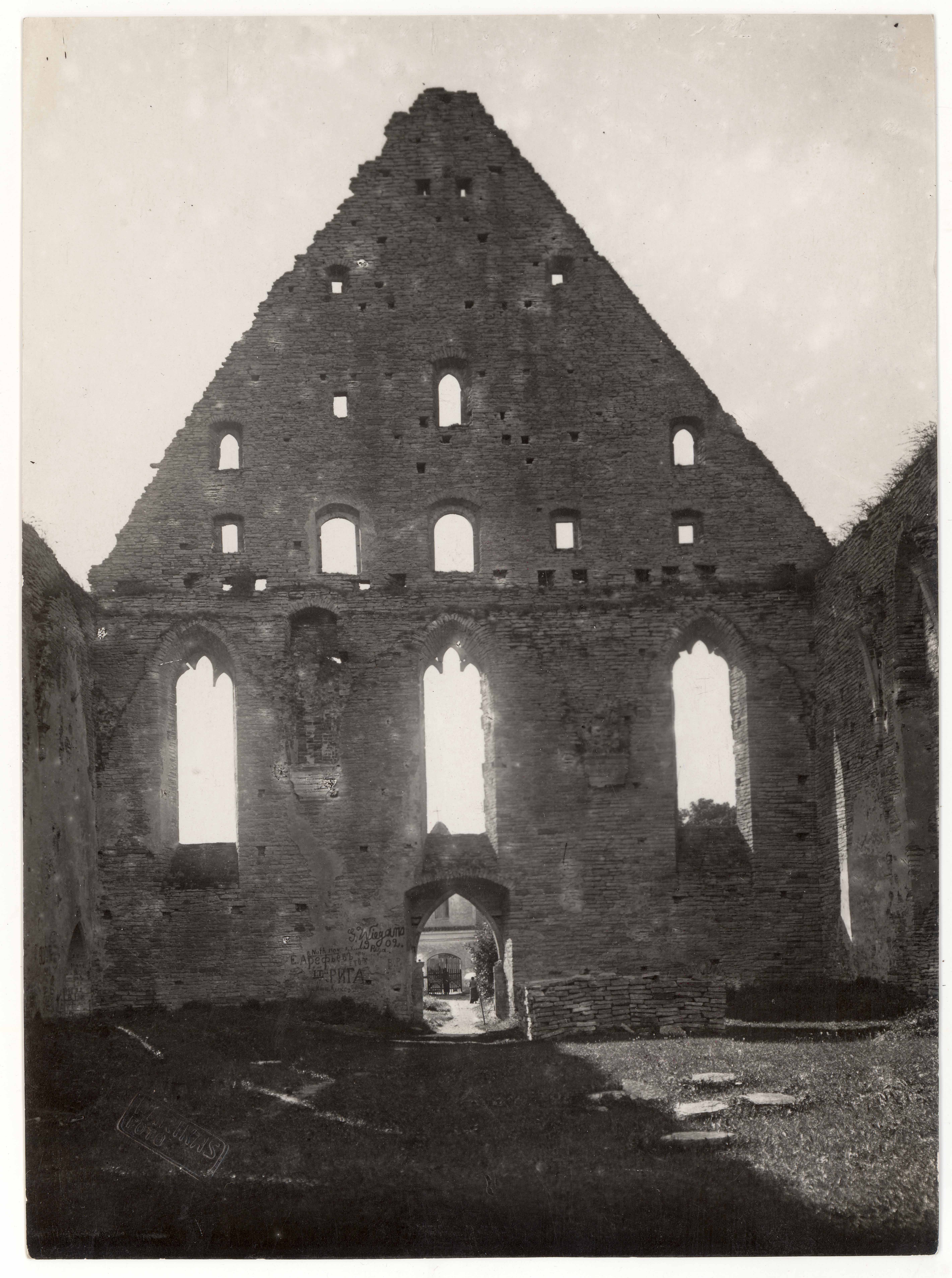 Pirita kloostrikiriku viiluga läänesein seest. Lääneviil konserveerimata