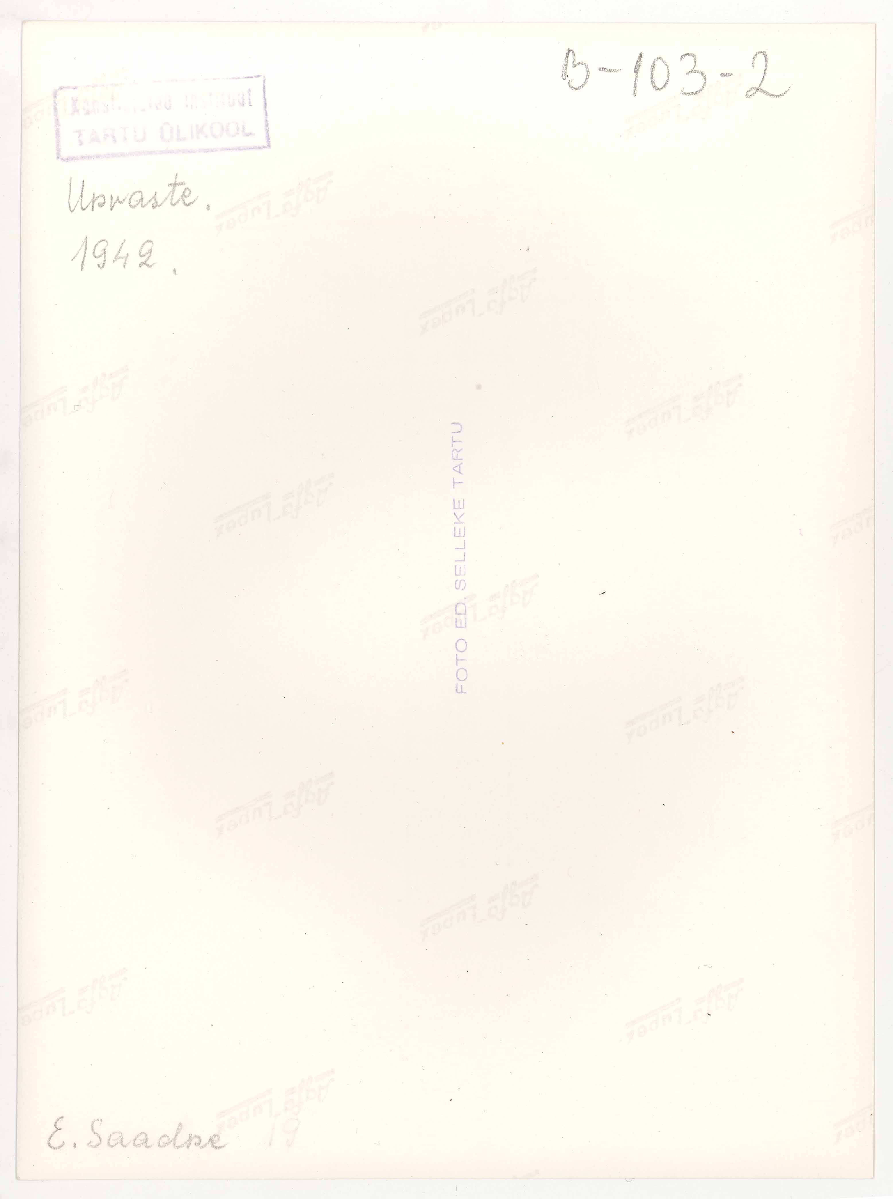 Tekst foto tagaküljel: Urvaste. 1942. E. Saadre. Templid: Instituut; ED. SELLEKE