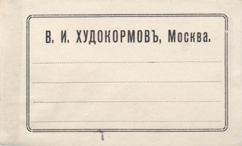 | dc.description | Nelinurkses raamistuses ülal: В. И. ХУДОКОРМОВЪ, Москва. | |