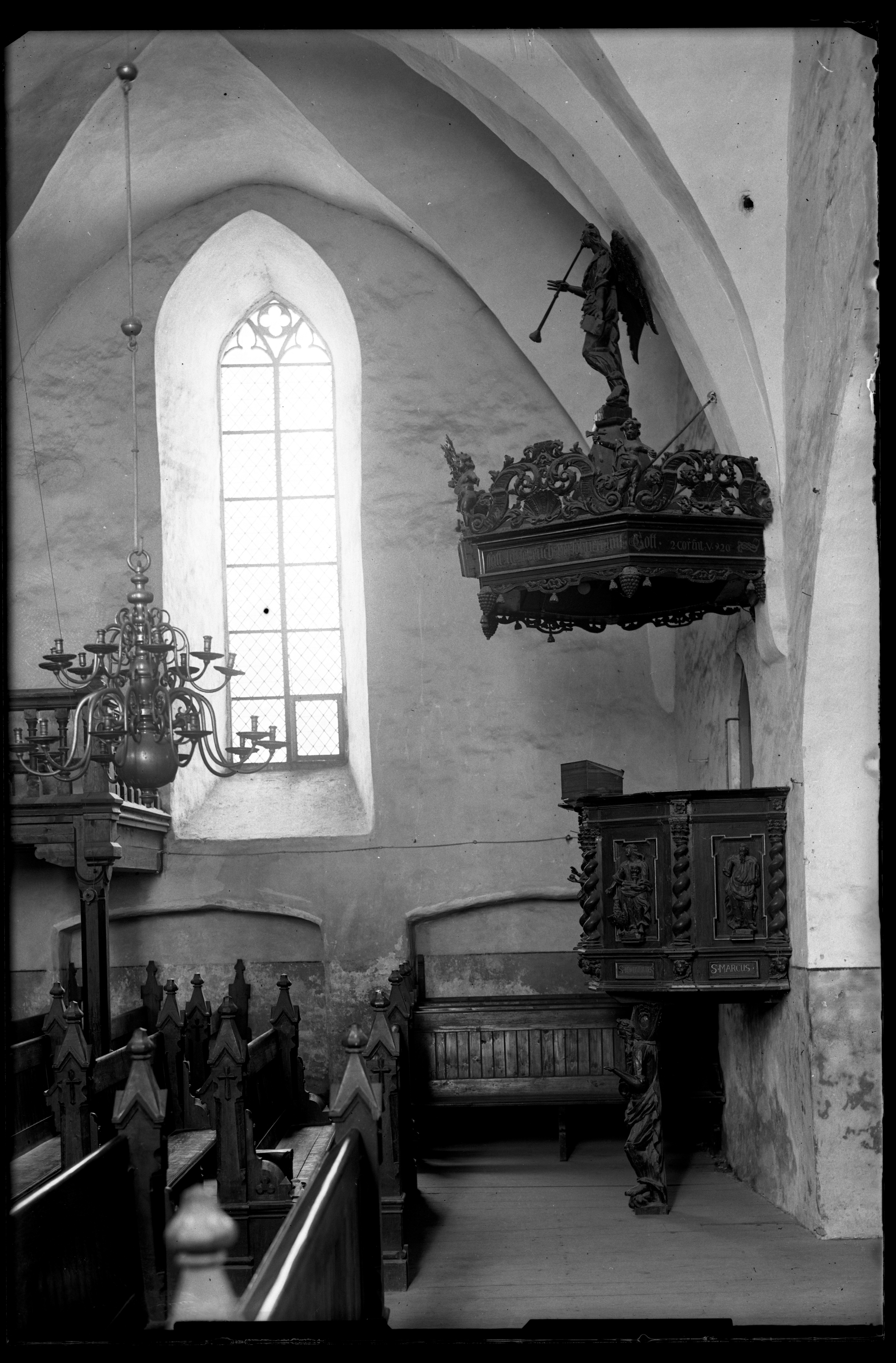 Haljala Püha Mauritiuse kirik. Kantsli (J. V. Rabe, 1730) külgvaade kesklöövist N suunas