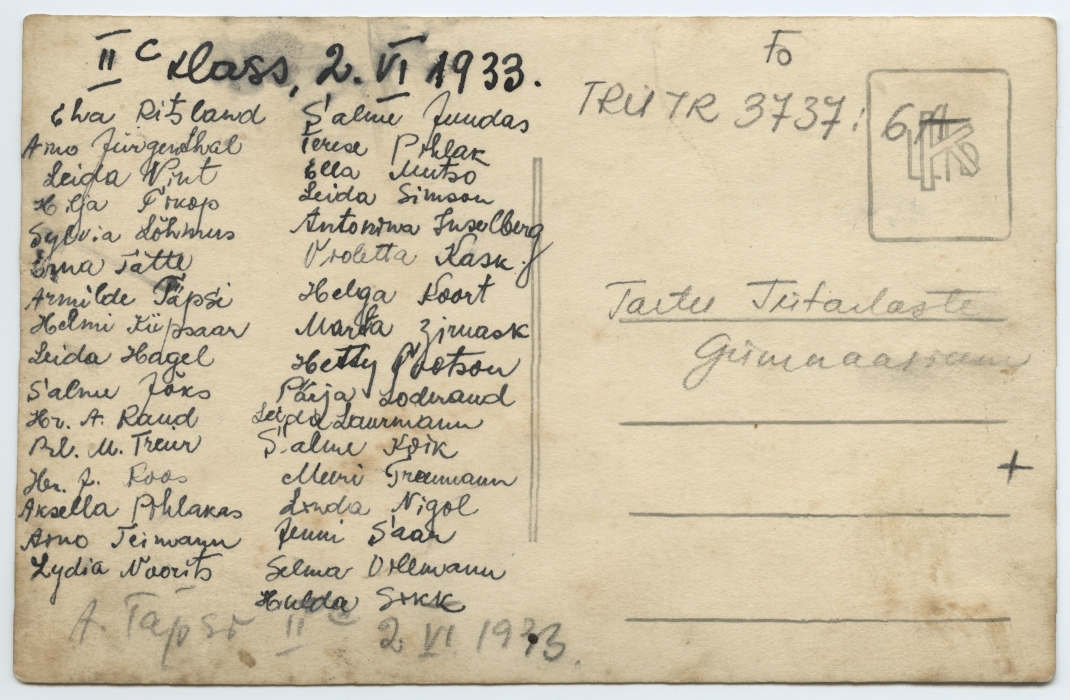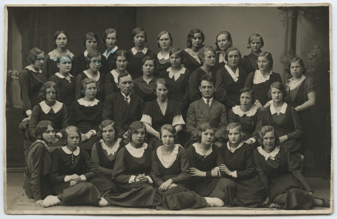 Tartu Tütarlaste Gümnaasiumi 2. c klass koos õpetajate ja direktoriga. Grupipilt